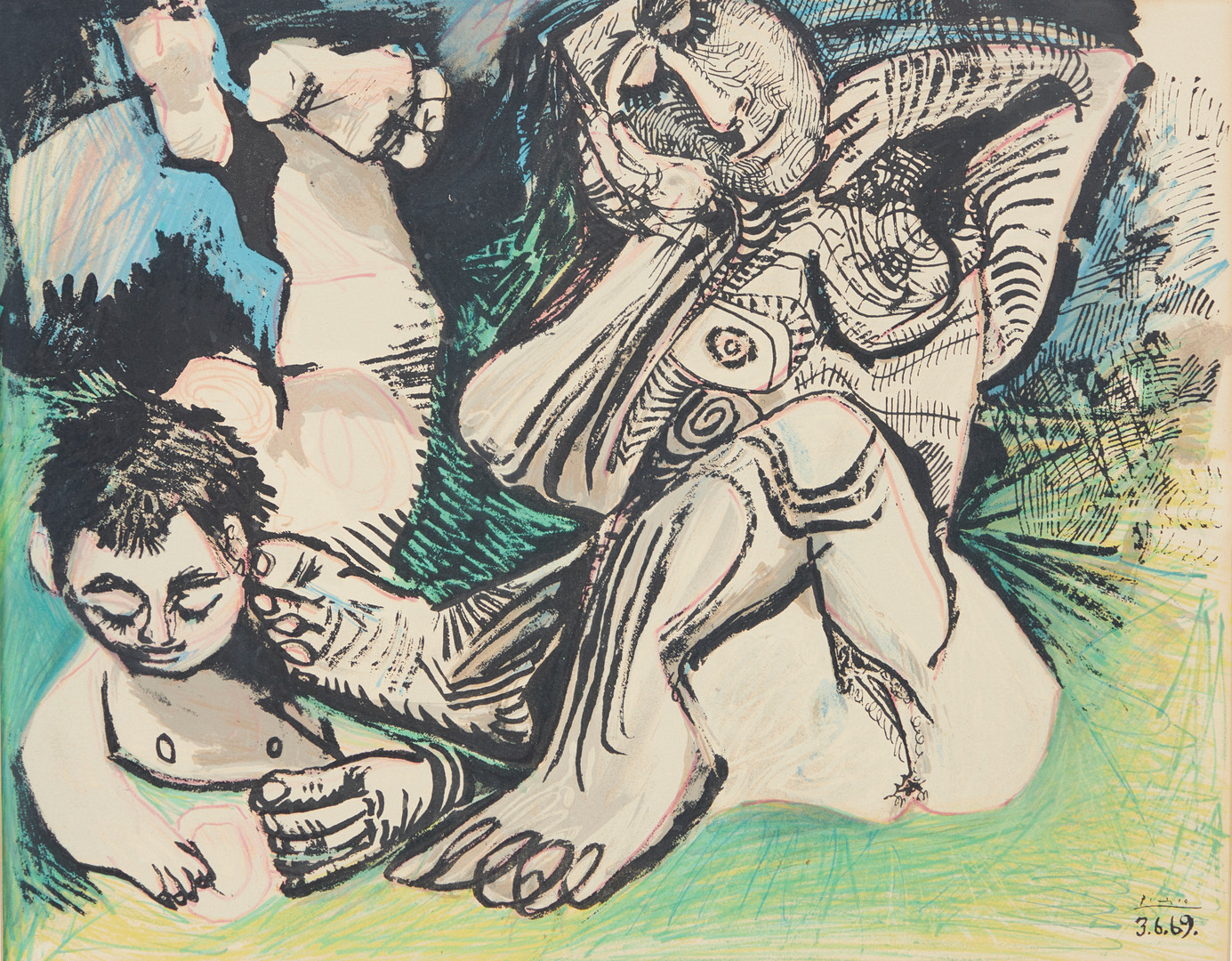 2503491. PABLO PICASSO. EFTER. Litografi, 'Au Baiser D'Avignon', 1972.