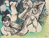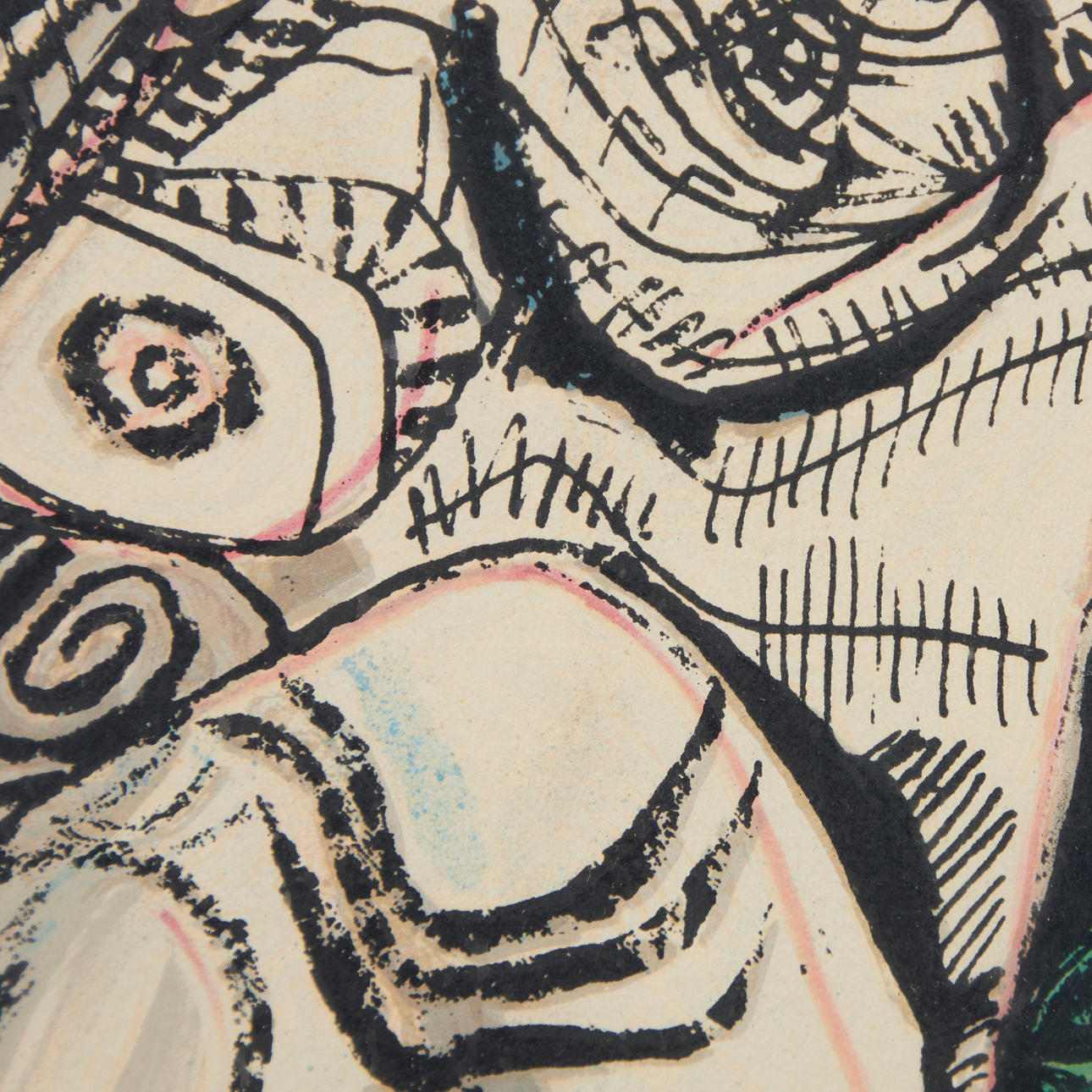 Pablo Picasso (1881-1973), litografi, 'Au Baiser D'Avignon', 1972. Abstrakt nøgen i grøn, blå og sort, signeret nederst til højre i trykplade, 39x49cm (60,5x69,5cm).