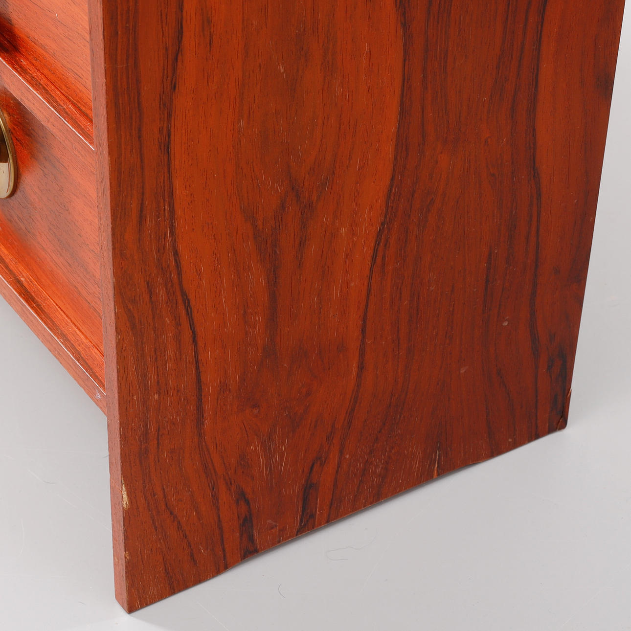 Fineret med palisander. Fire skuffer med messingbeslag. Bredde 80 cm, dybde 35 cm, højde 50 cm.