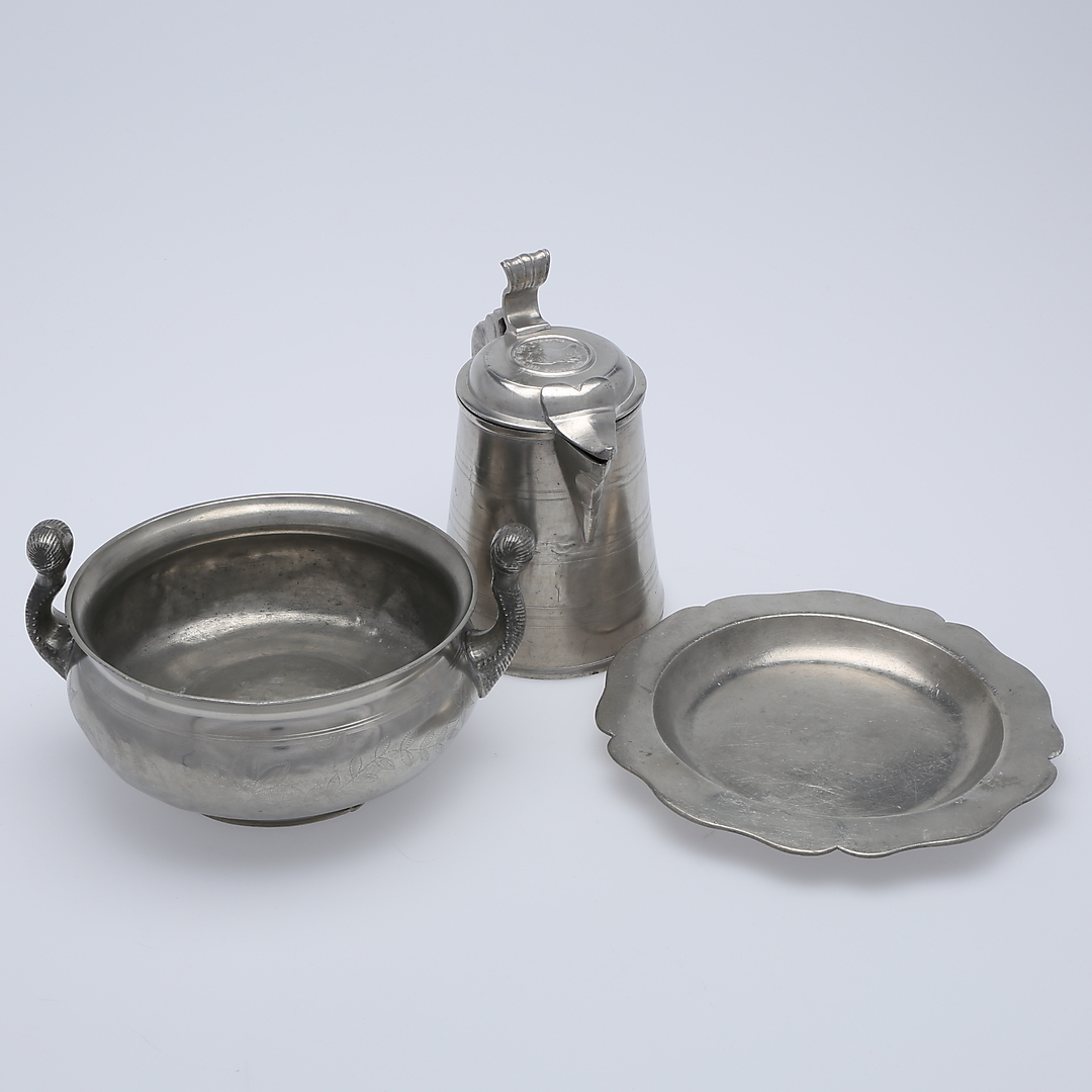 251049. TINN OBJEKTER, 3 stk, 1800-tallet.