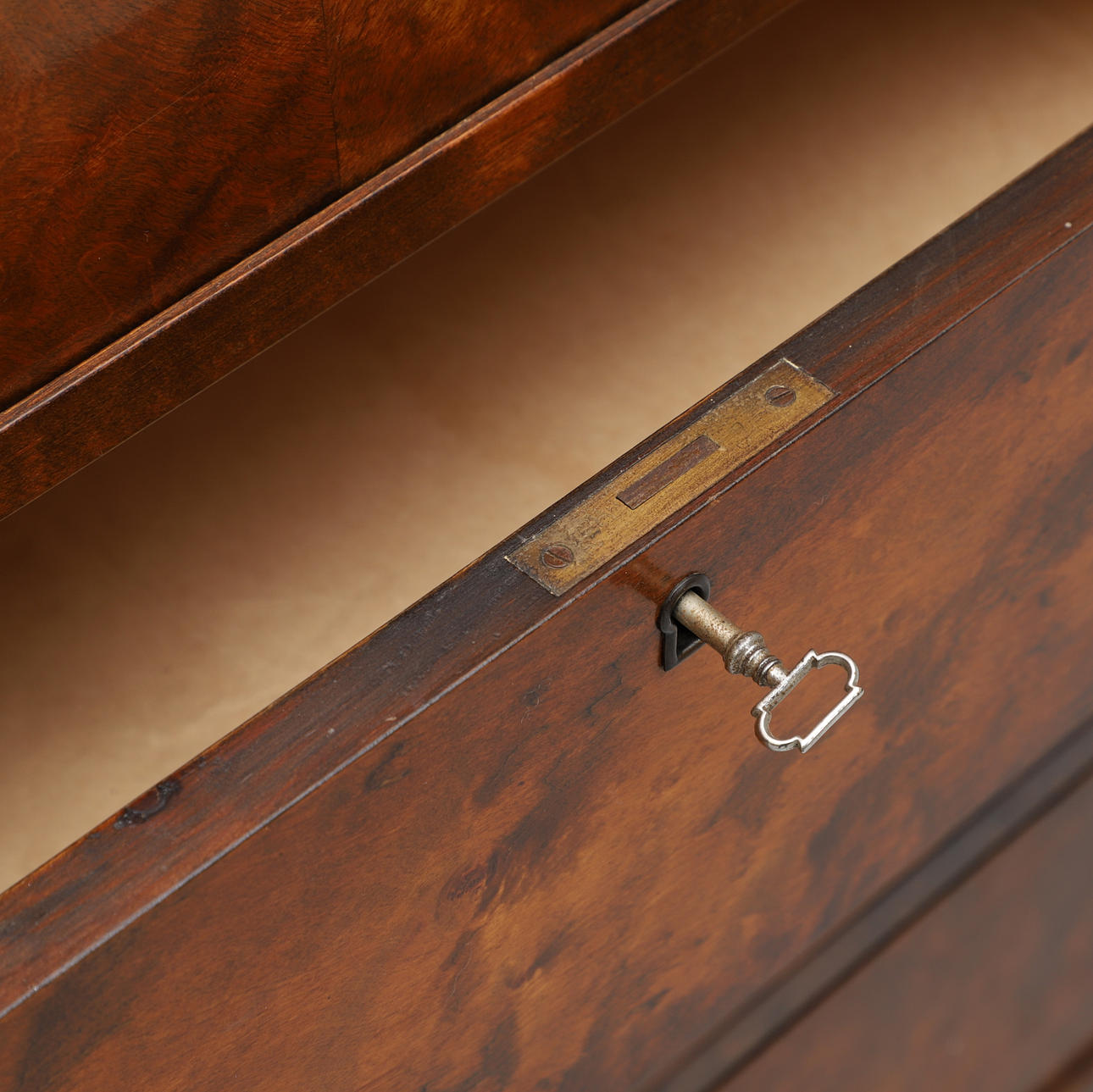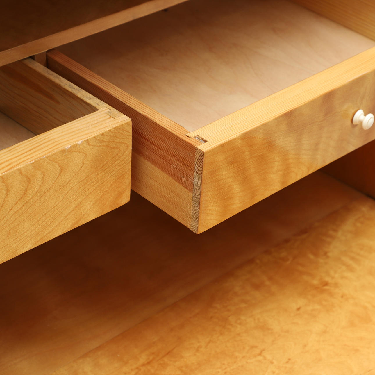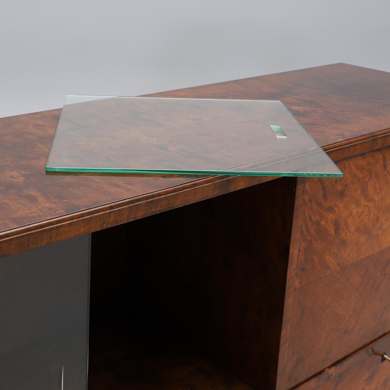 Mindre slitage. Et indhak til glasskydedøren mangler en skydeliste. Mindre stød.