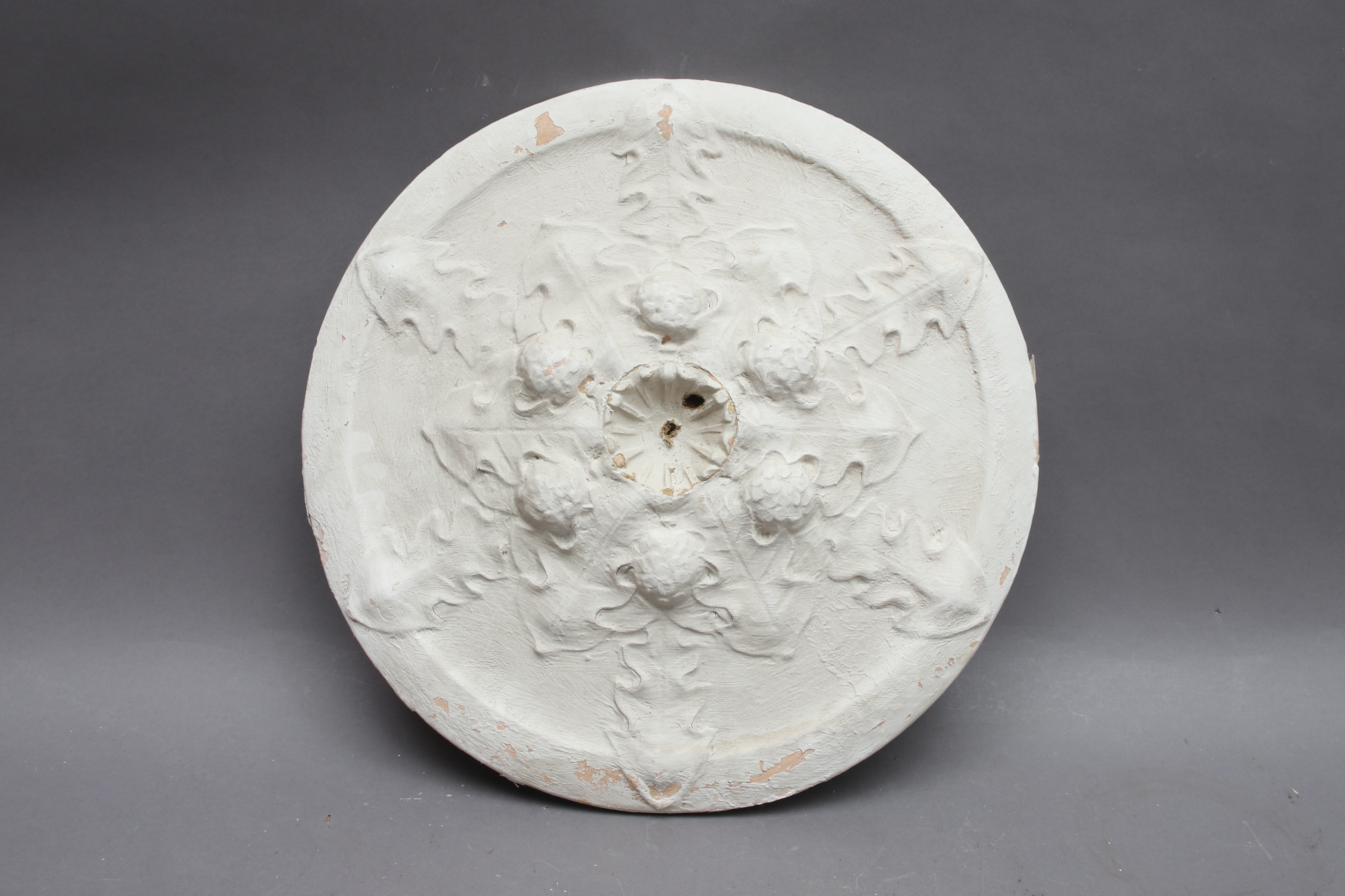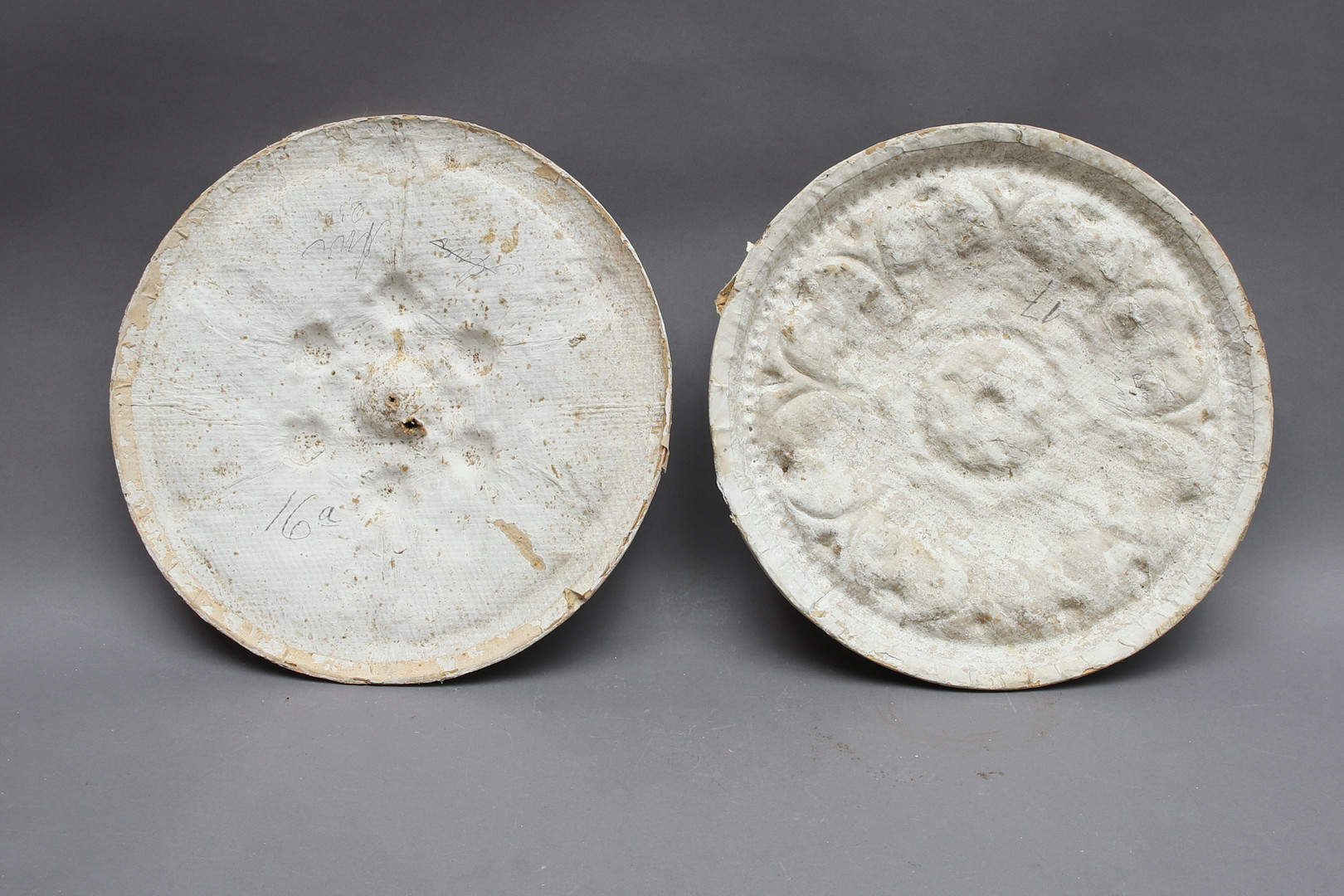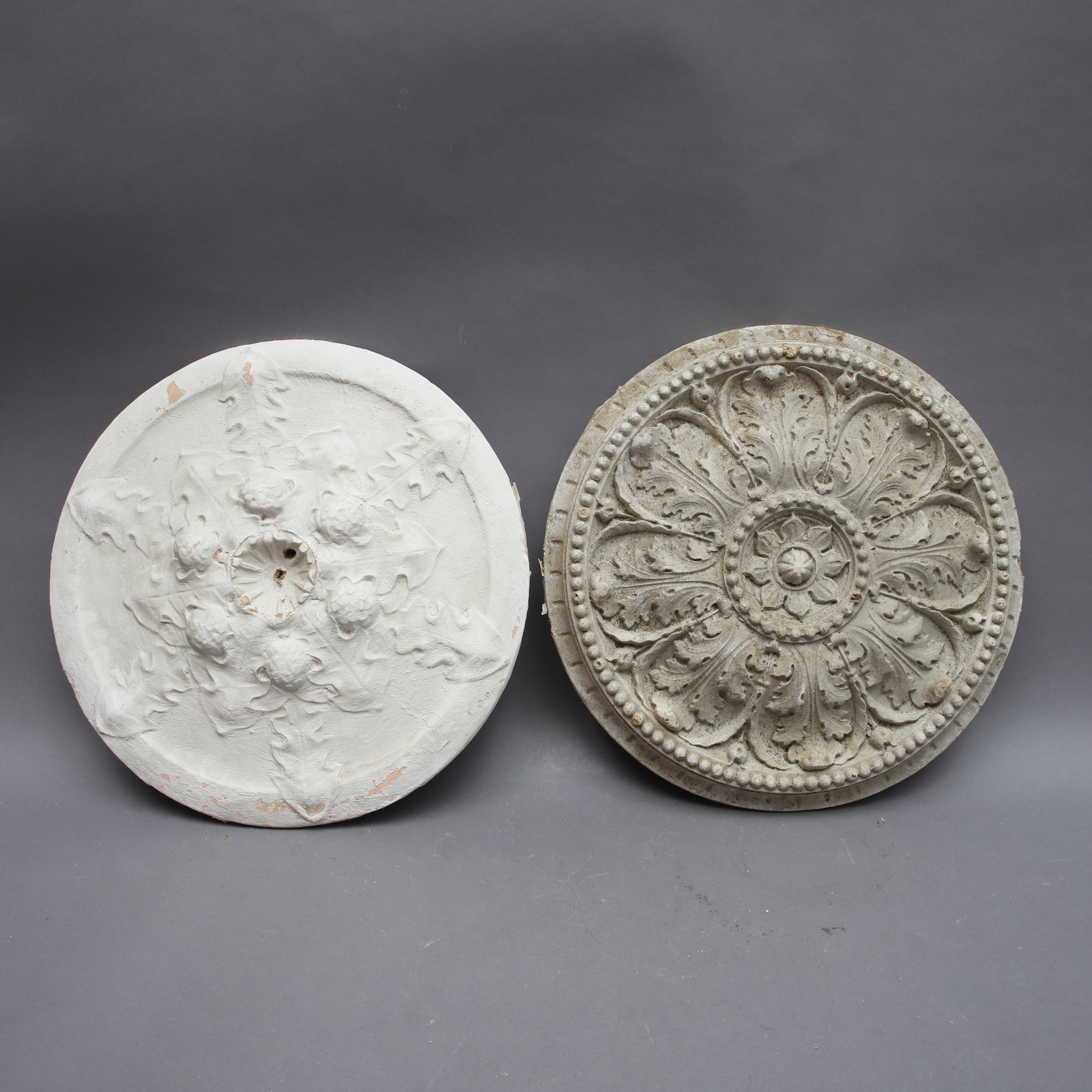 2519007. LOFTSROSETTER, 2 stykker gips og papmache.