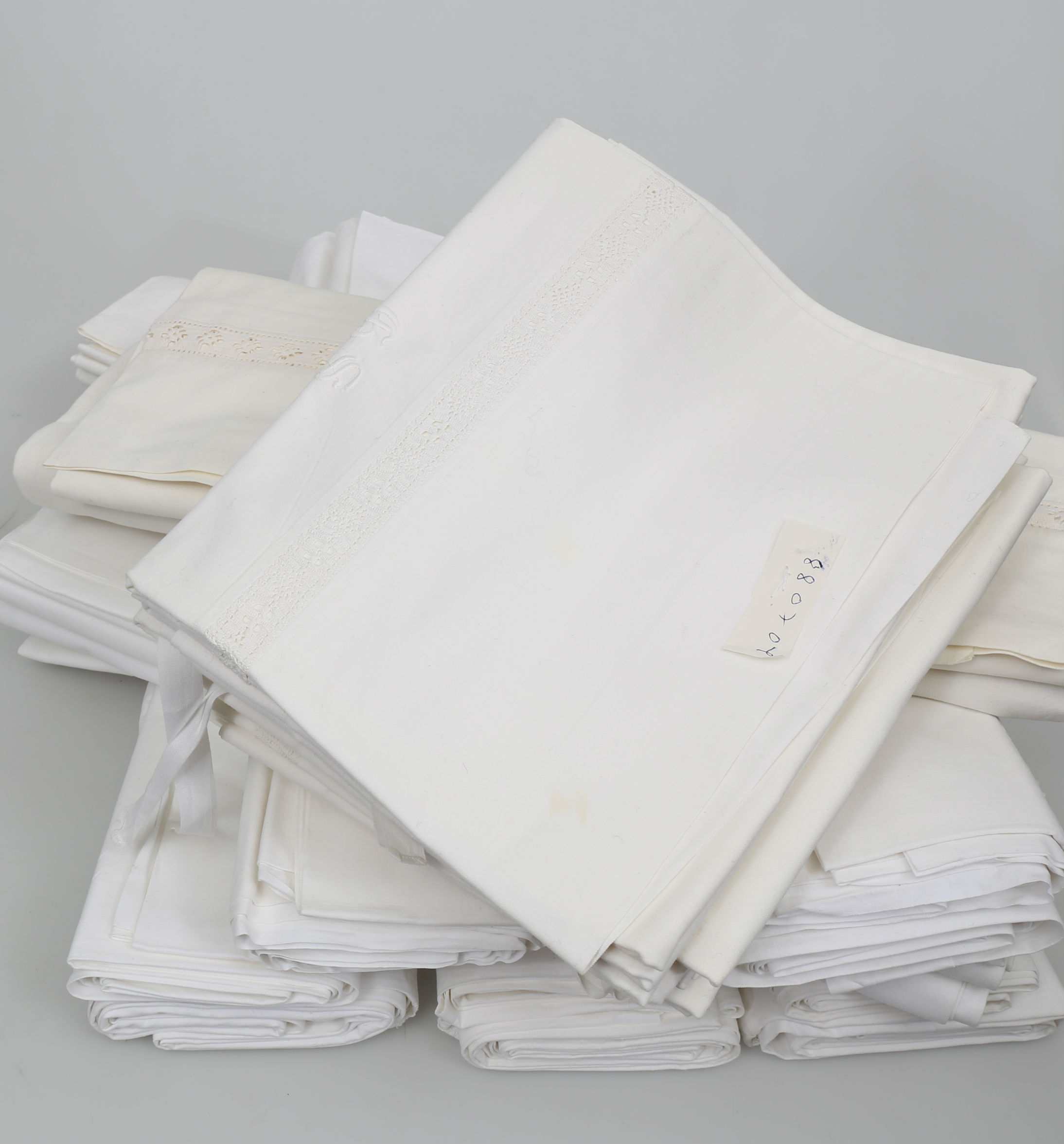 251907. LAGEN OG PUDER, bomuld, 16 + 10 stk., monogram, 20. århundrede.