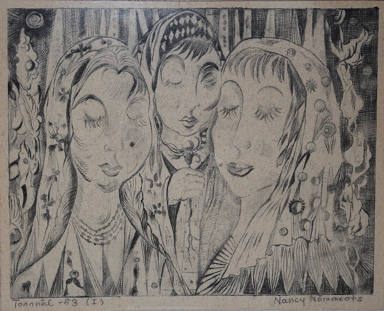 252009. NANCY NÖMMEOTS. tørstift, signeret, dateret 53.