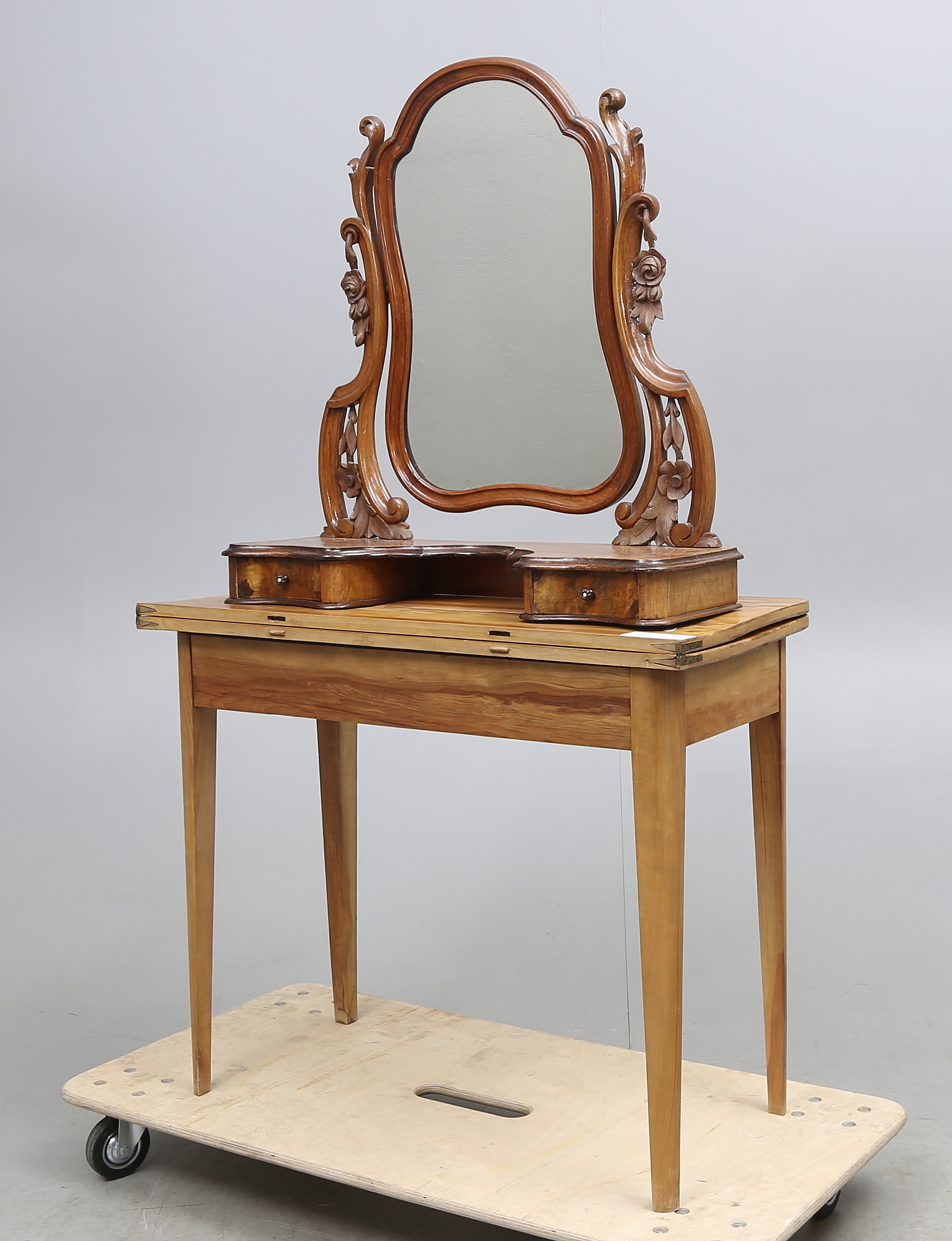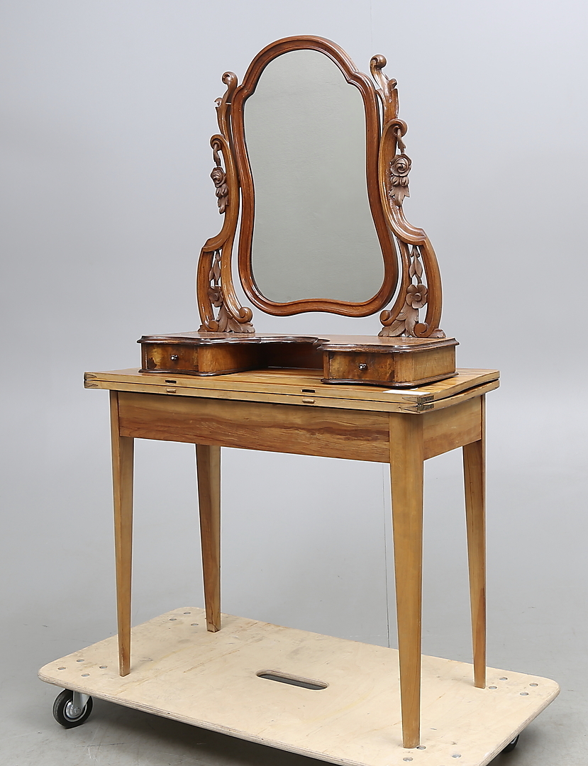 252064. SPILBORD og SKABSSPEJL, omkring 1900.