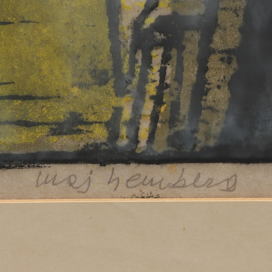2524066. MAJ HEMBERG. Farvet træsnit, eget tryk, signeret.