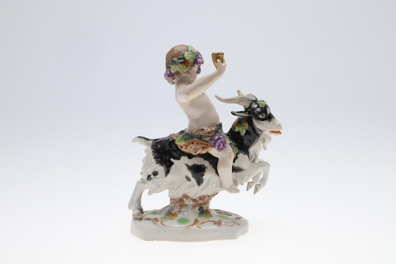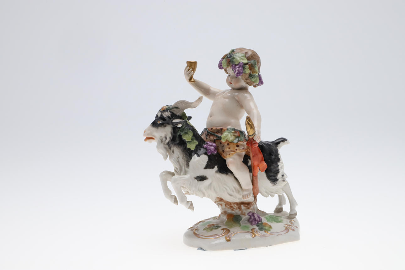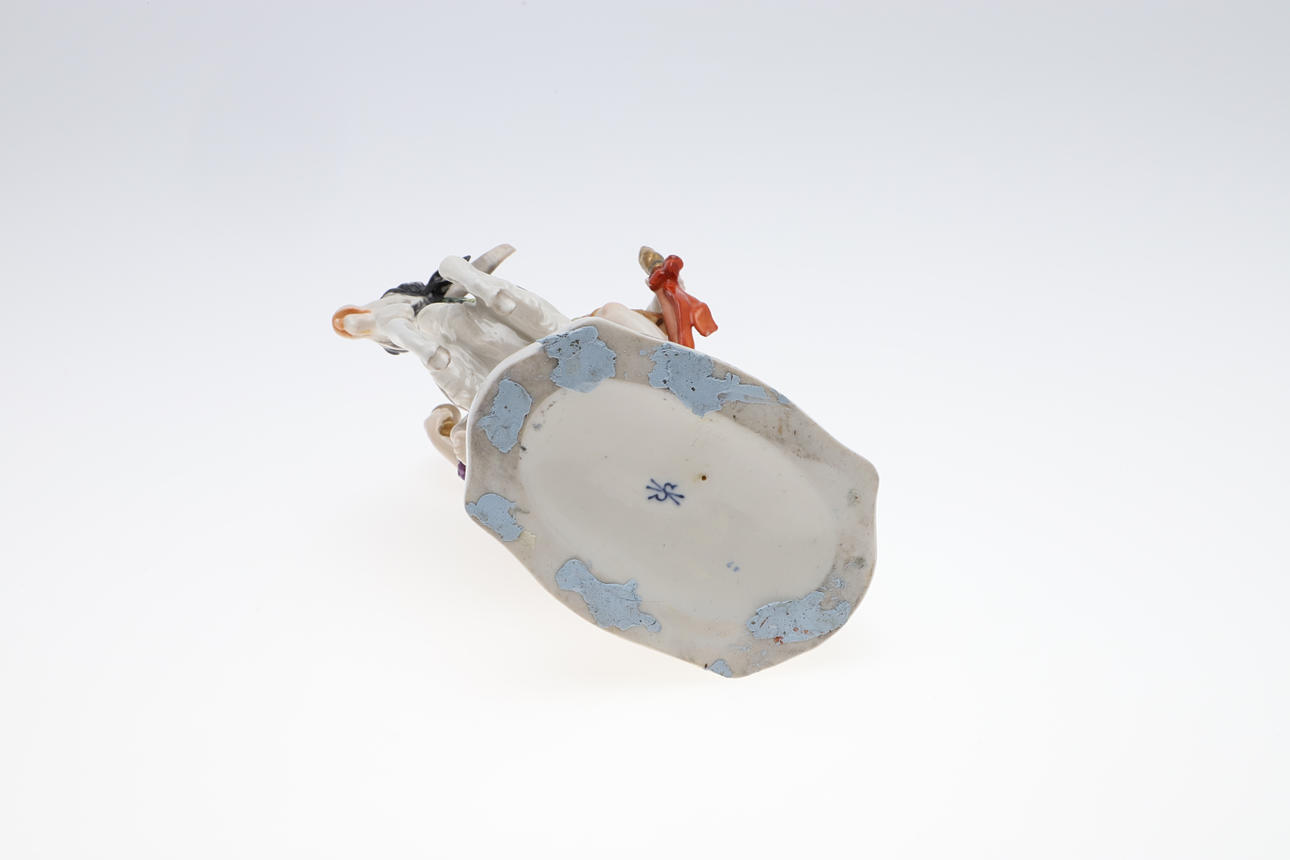 Kerub og ged, ende af sværd eller stav knækket og repareret.