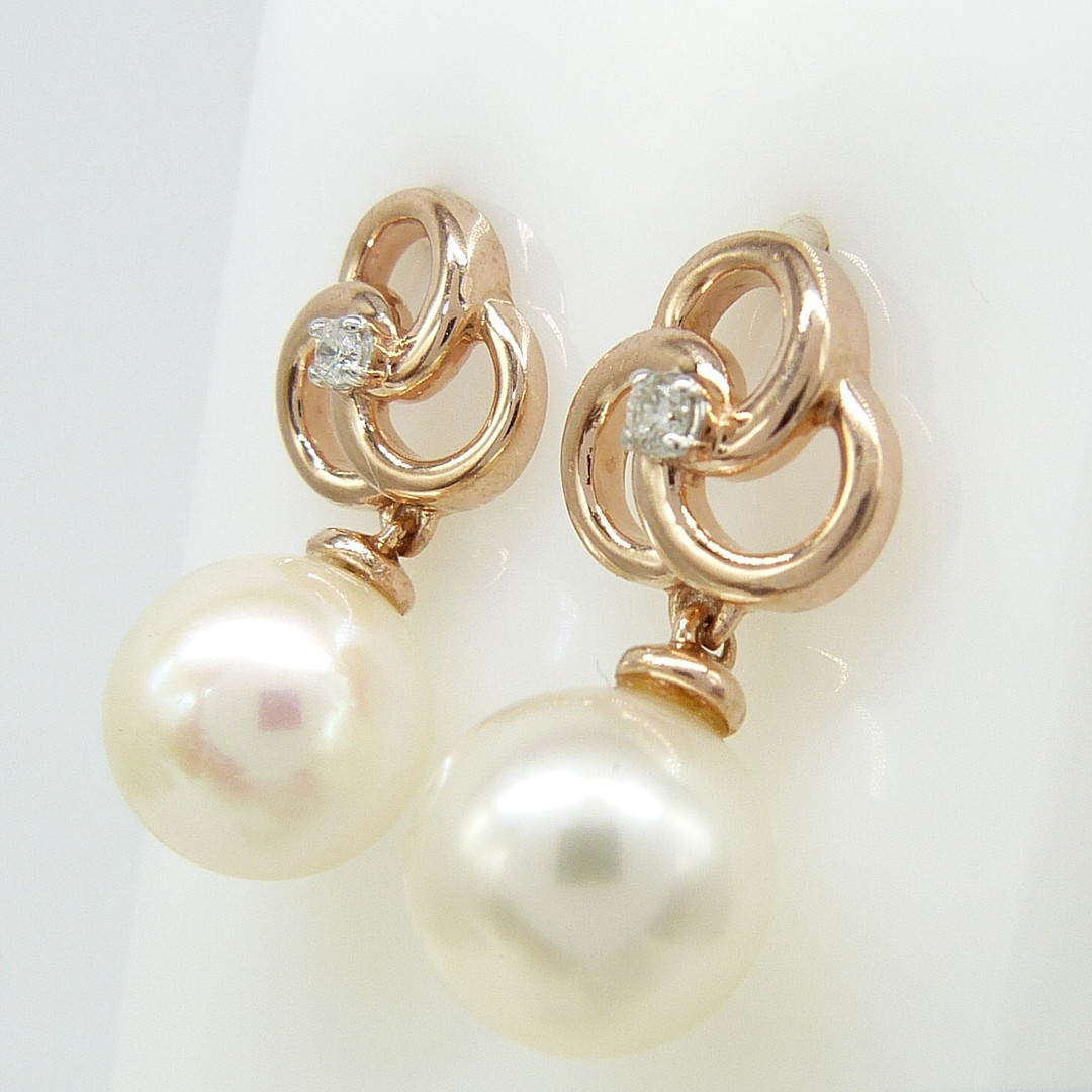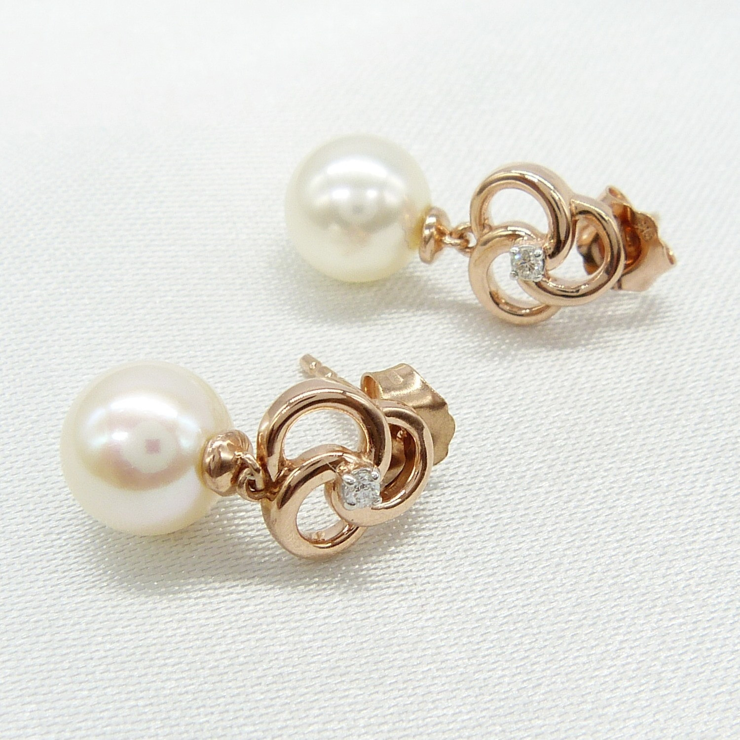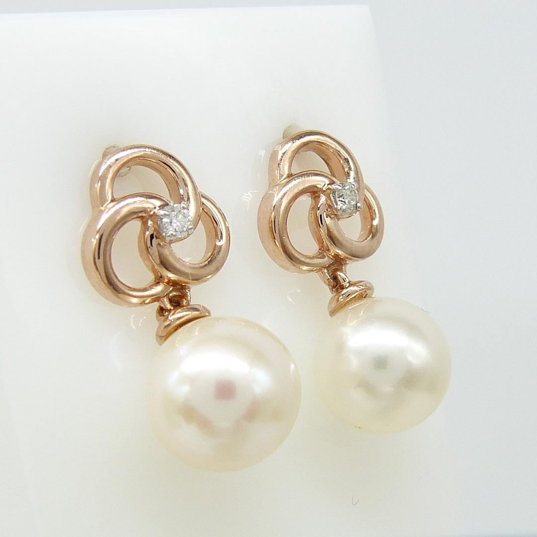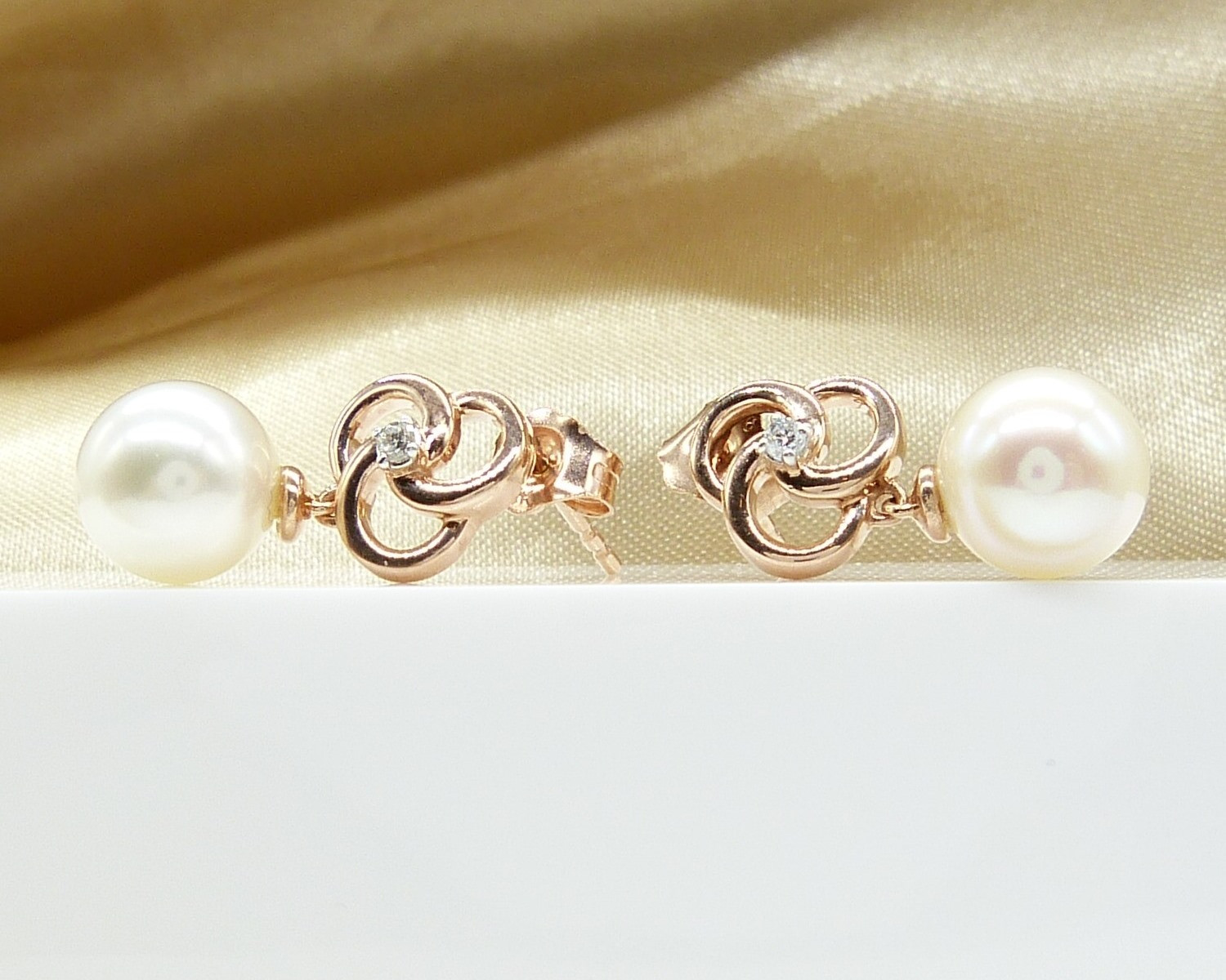 2525161. PERLE, DIAMANT, rosa guld øreringe.