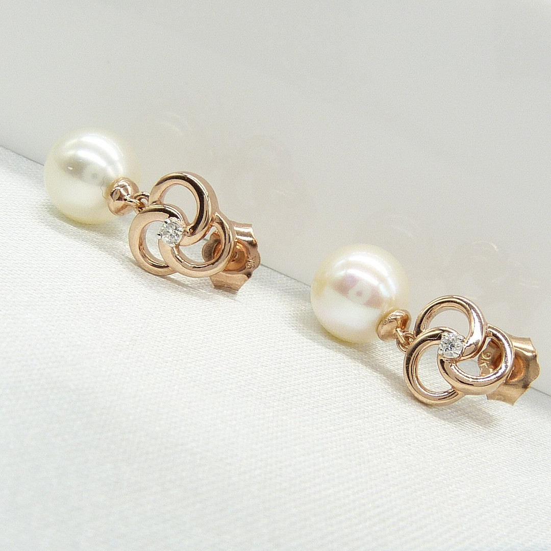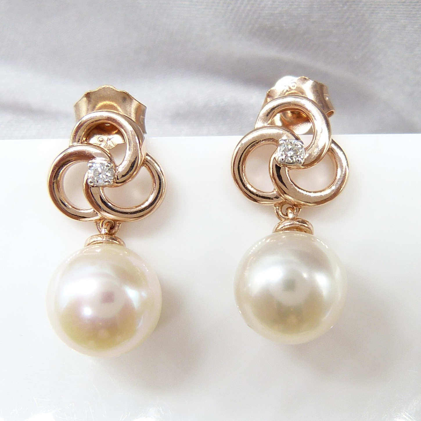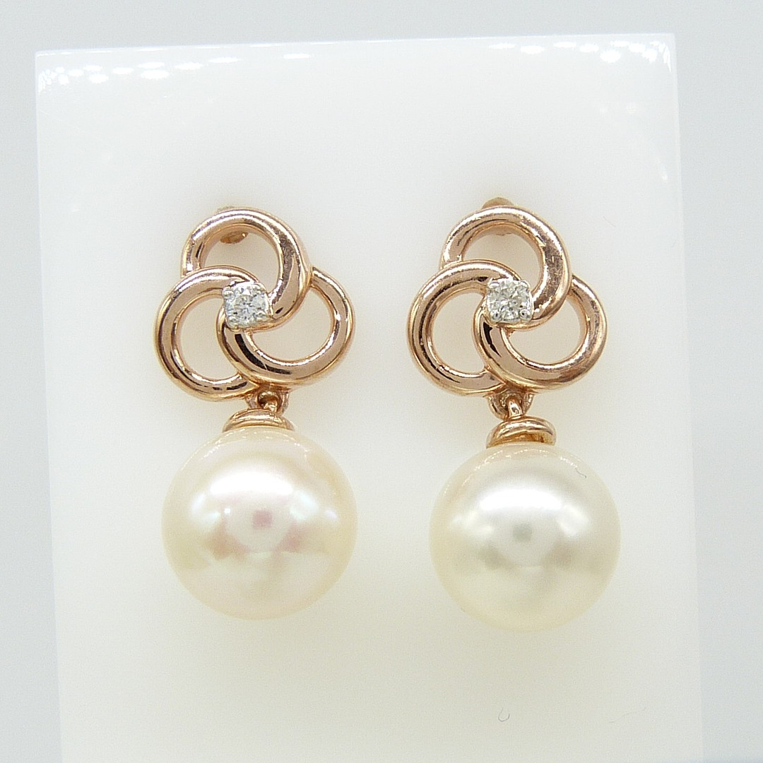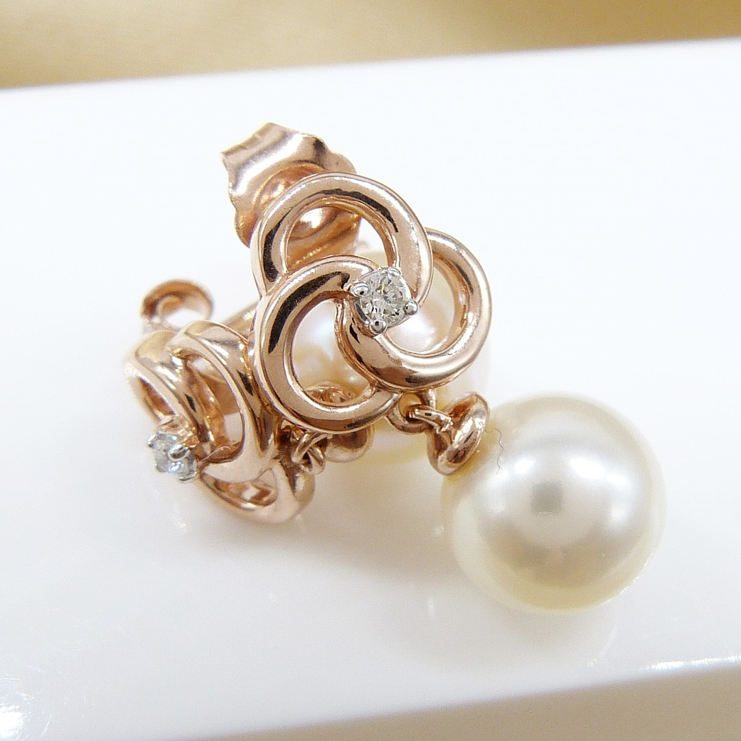 2525161. PERLE, DIAMANT, rosa guld øreringe.