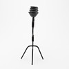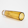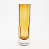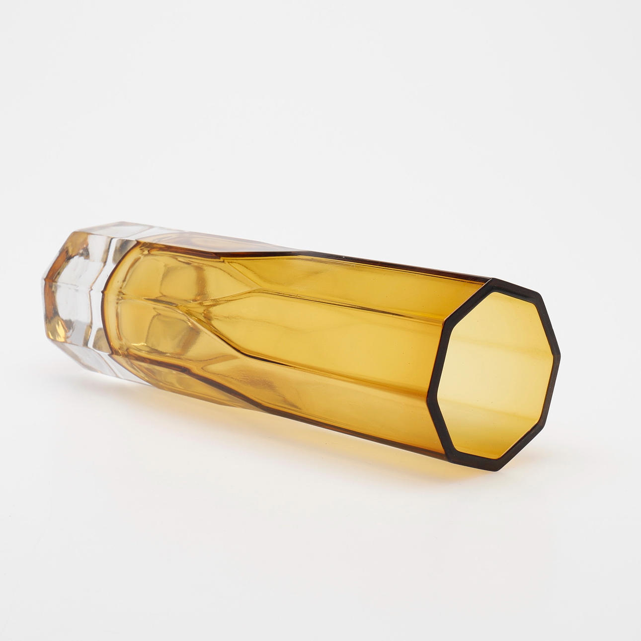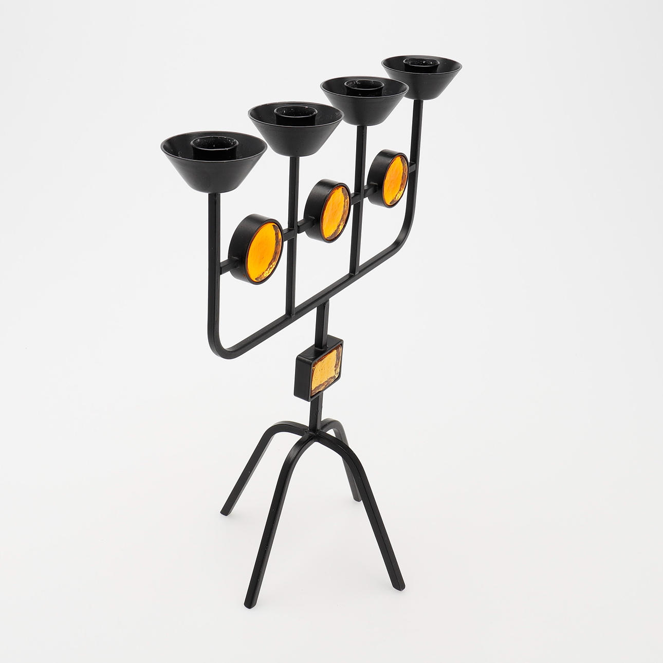 kandelabre af sortfarvet smedejern med detaljer af ravfarvet glas, højde 33 cm og vase med formstøbte facetter, Lindshammar, højde 27 cm.