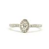 En 950 platin klynge ring sat med en oval og brillantslebne diamanter og DIAMANT sæt skuldre, med et WGI certifikat, ca. 0,24ct, farve F, klarhed SI2, med yderligere 0,20ct i skuldrene, (M.5).