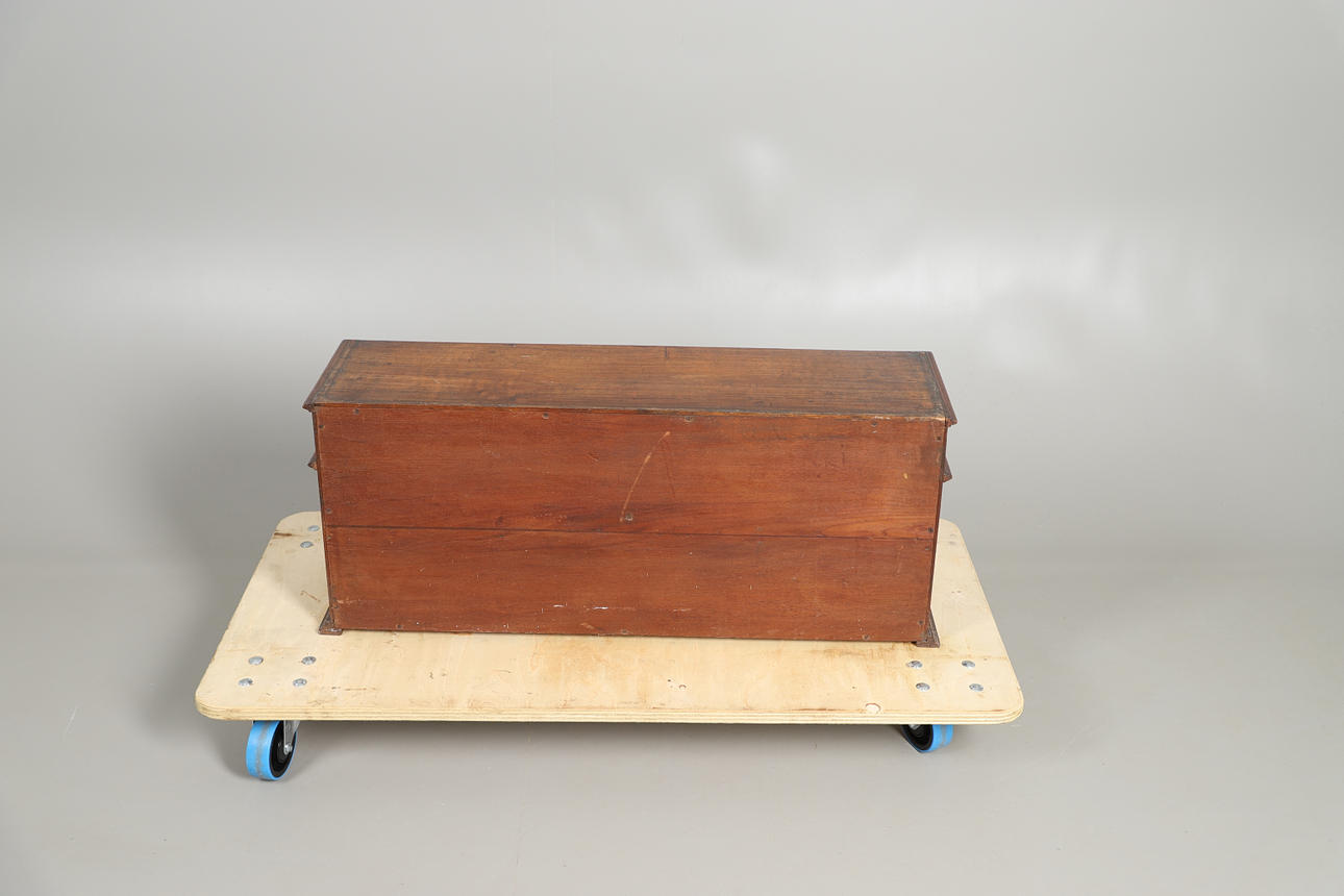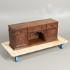 monteret med skuffe og skabe, med udskåret blomster- og bladdekoration, højde 40 cm, bredde 94 cm, dybde 27 cm.