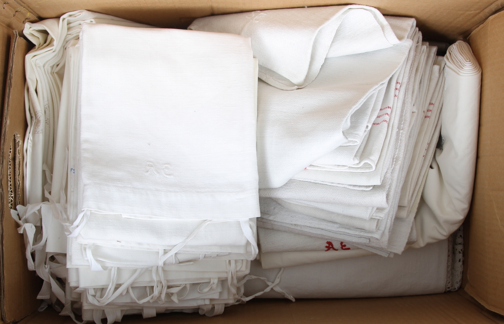 253767. HÅNDKLÆDER, LAGENER OG PUDER, 1900-tallet.