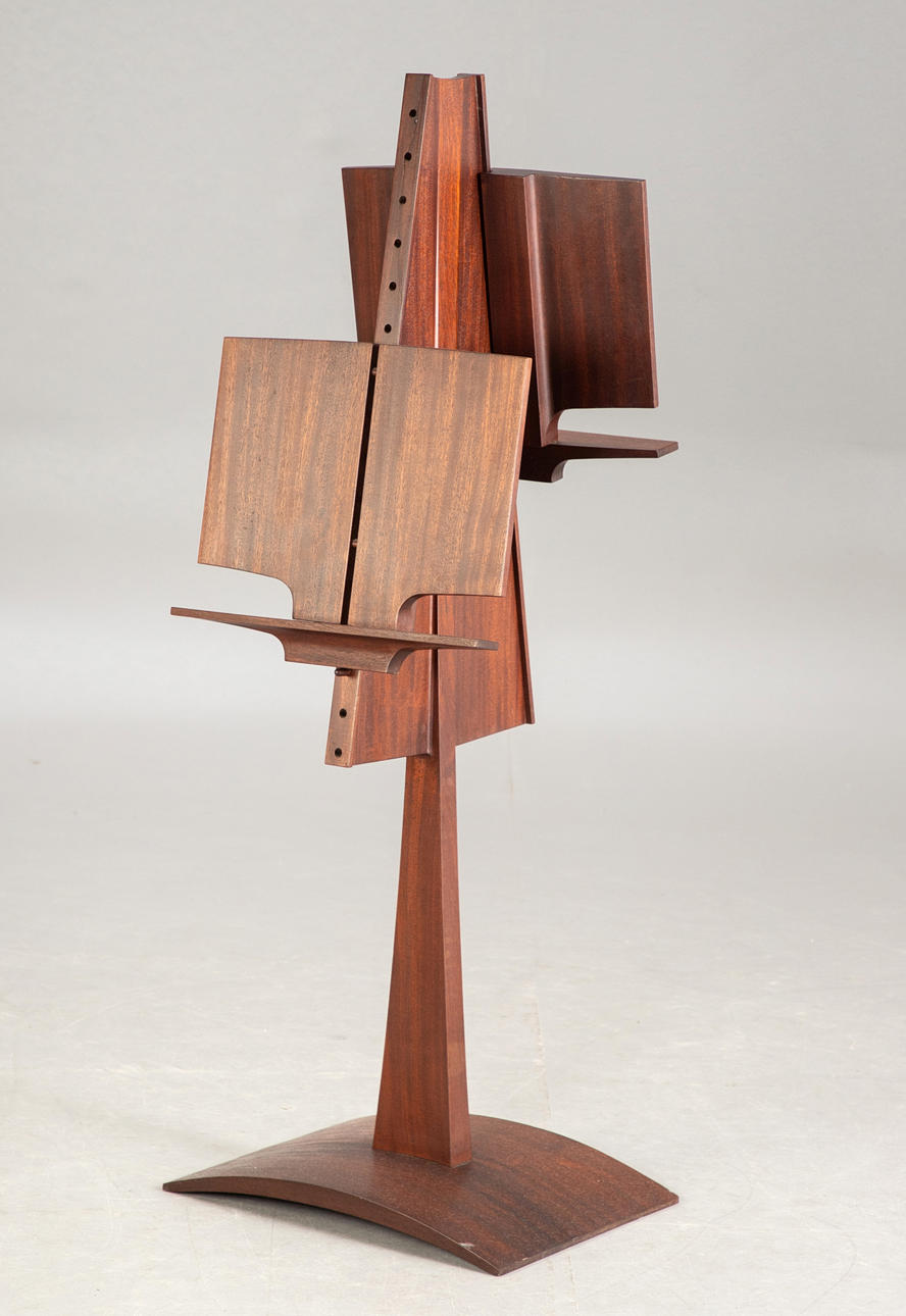 Dobbelt nodestativ. Fremstillet af massivt træ. Nodestøtte justerbar i højden på begge sider.