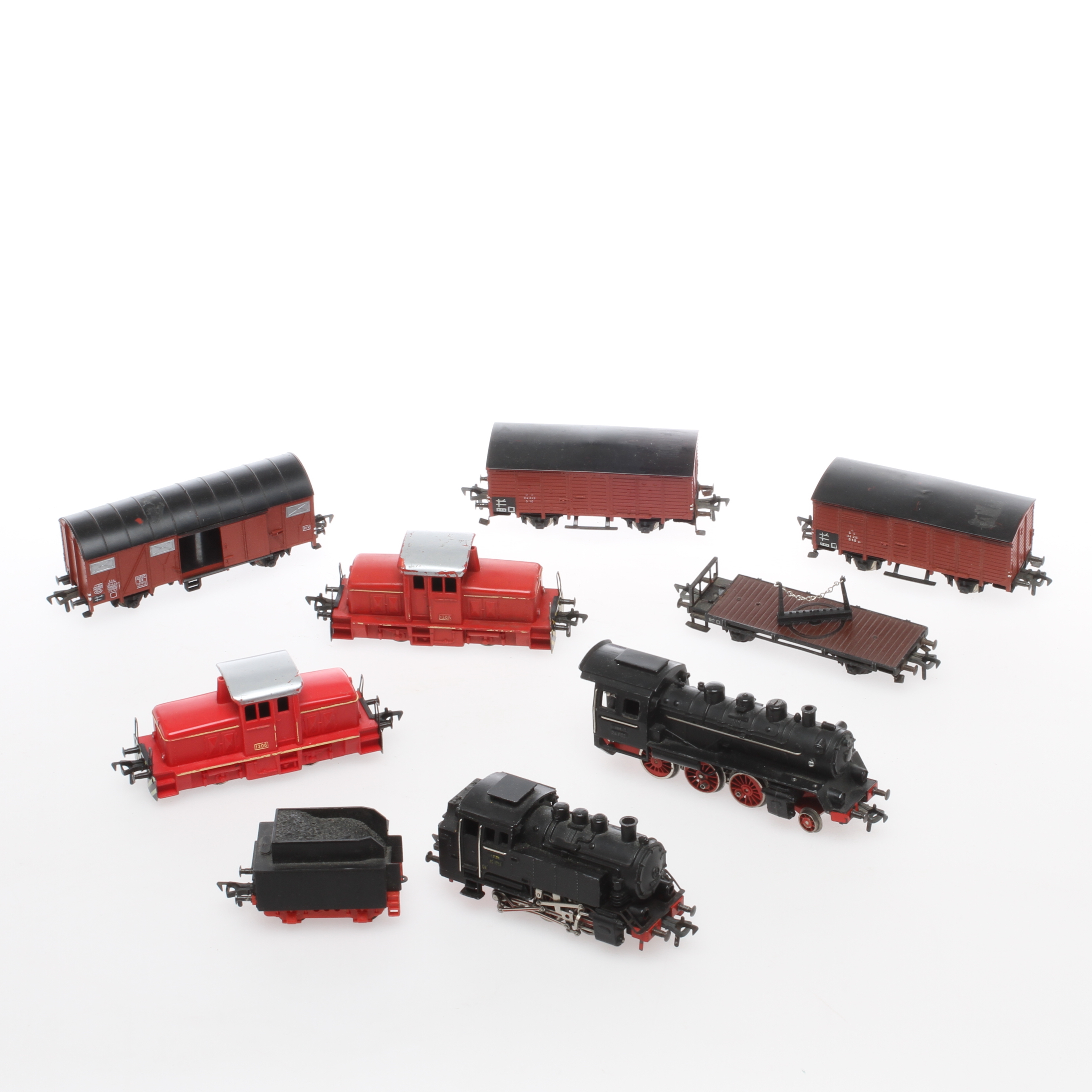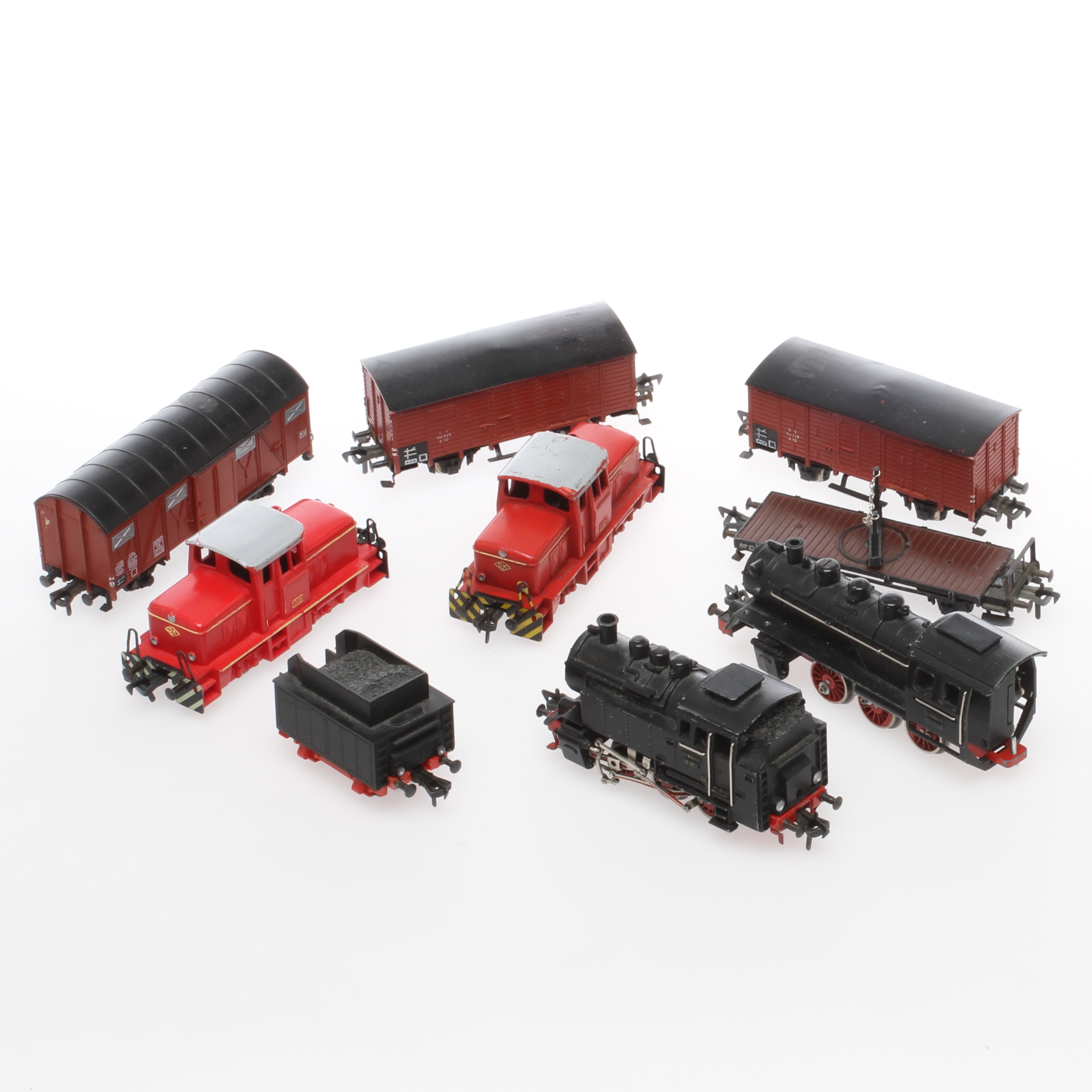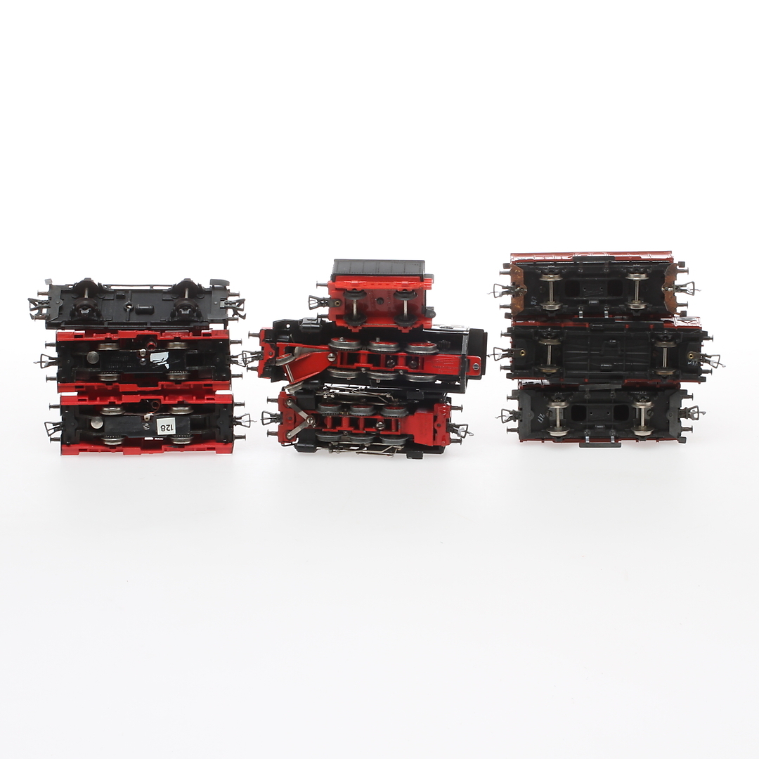 254728. MODELTOG FLEISCHMANN 4 lokomotiver og 4 vogne.