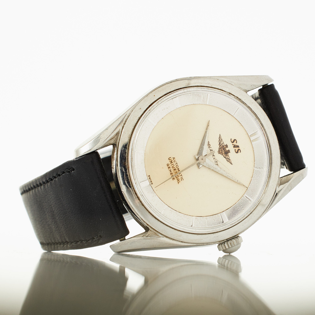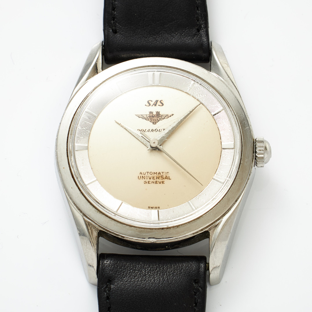2553002. UNIVERSAL GENEVE, armbåndsur, Polarouter, stål, 1950'erne.