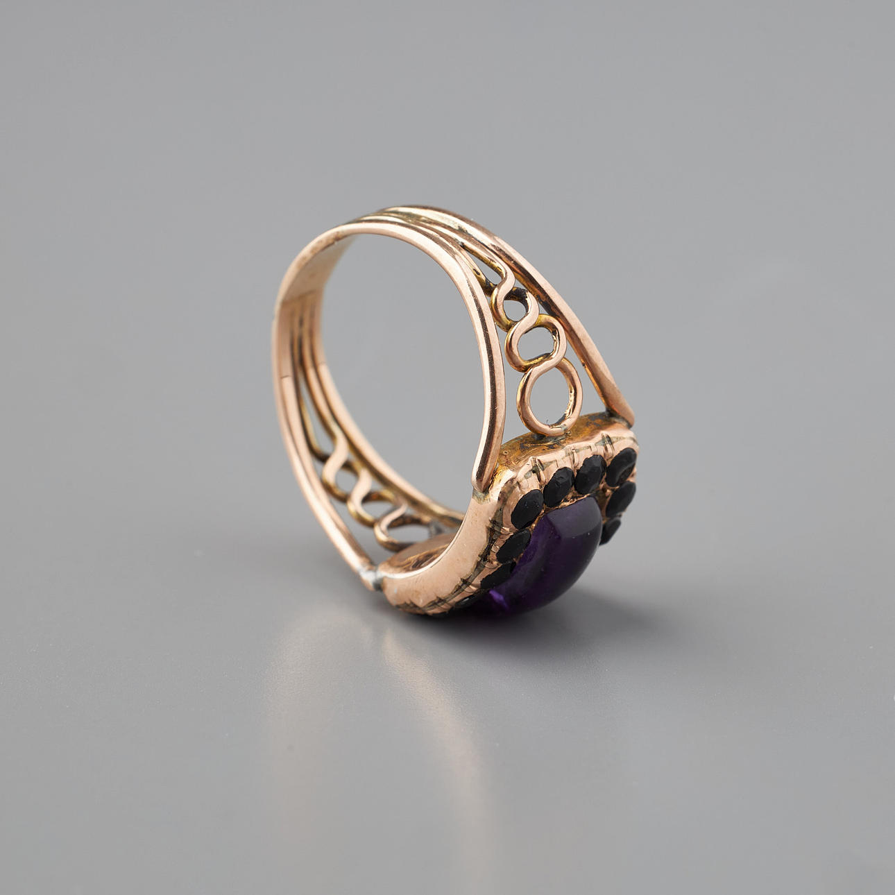 2554122. RING, cabochonsleben ametyst, onyx, guld.