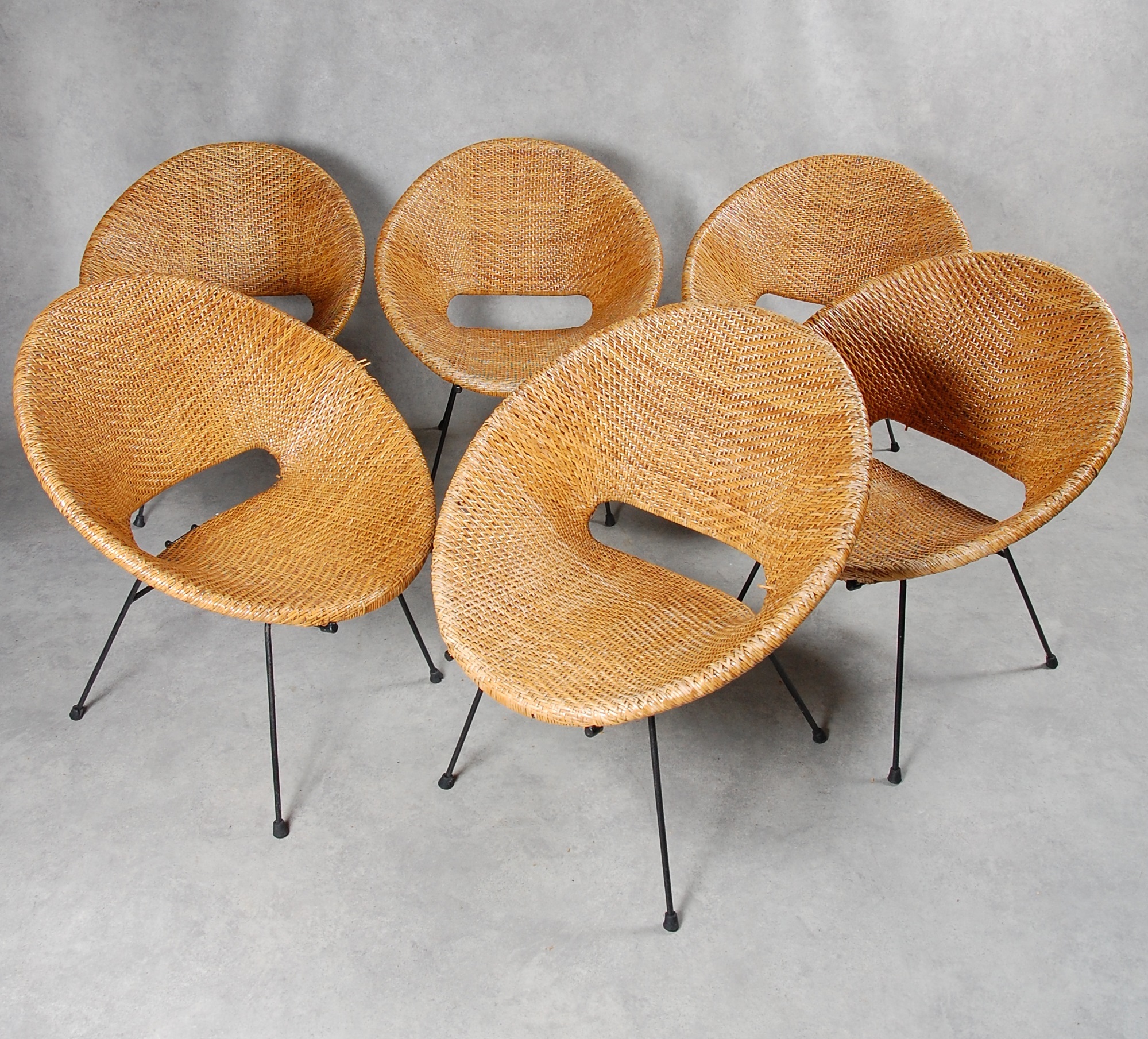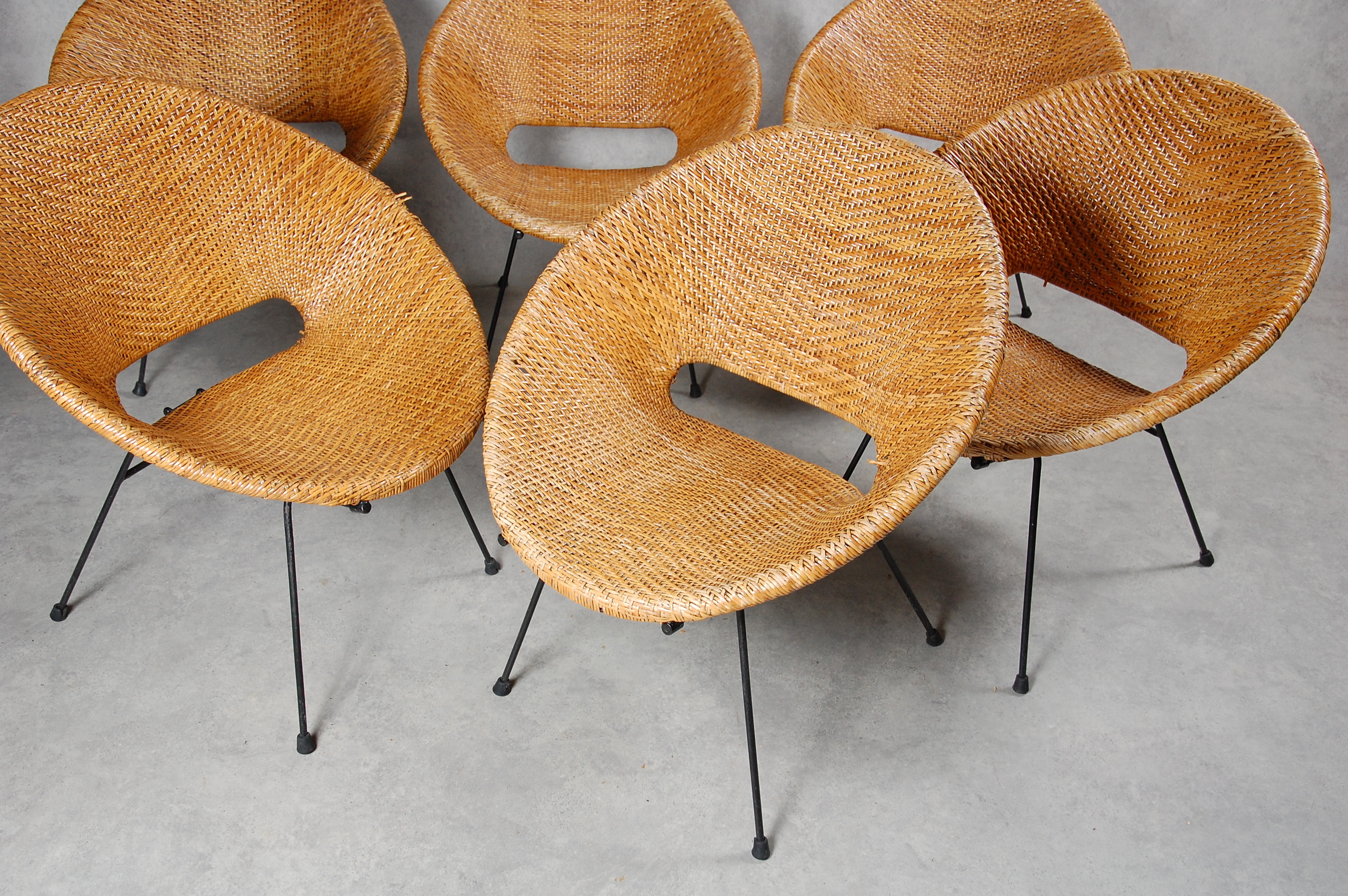 255444. HAVESTOLE, 6 stk, rattan, jern.