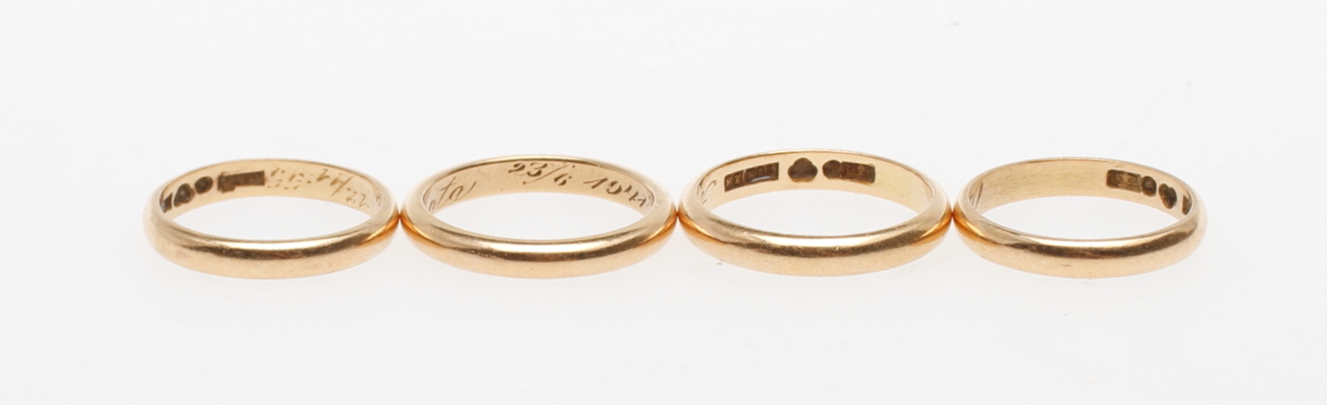 25608. RINGE, 4 stk, 18k guld, ca. 17g.