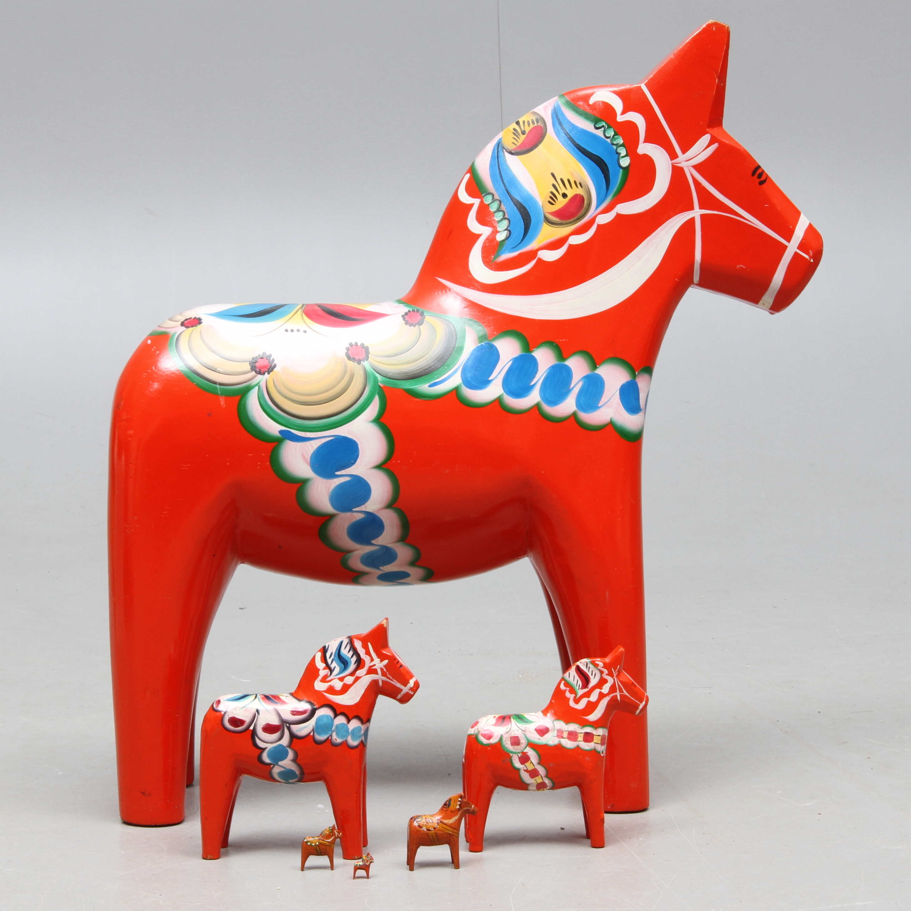 256258. DALA HESTE, 6 stk, malet træ, 20. århundrede.