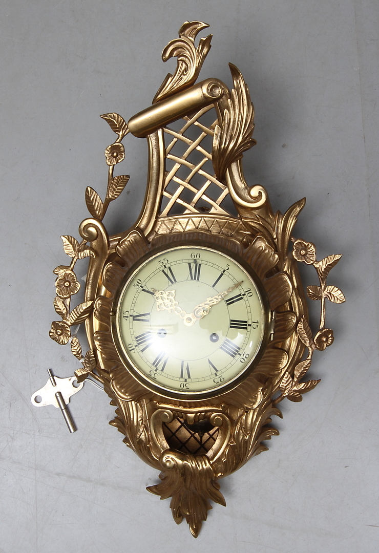 256618. VÆGPENDUL, messing, rokoko stil, 20. århundrede.