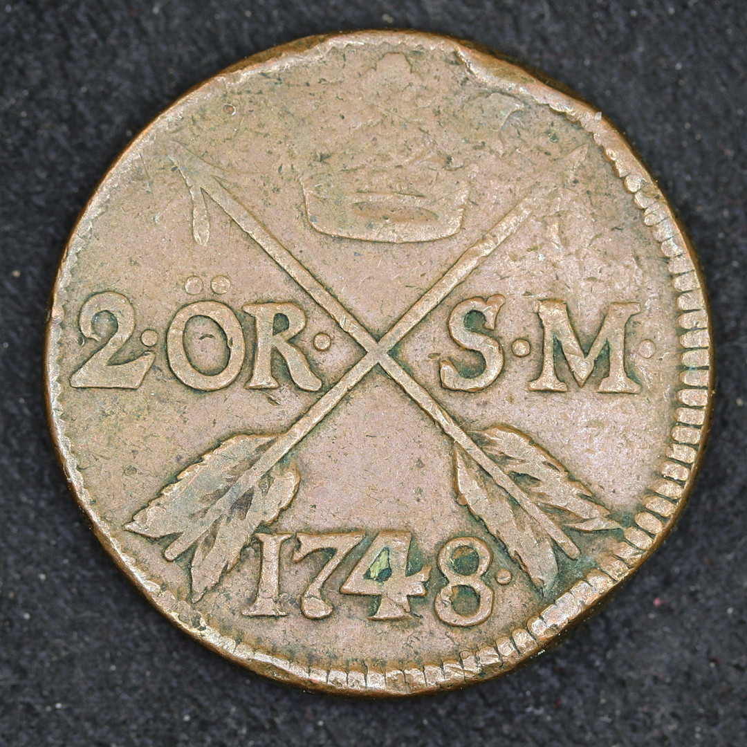 2566726. 2 Öre, Fredrik I, 1748, Sverige.