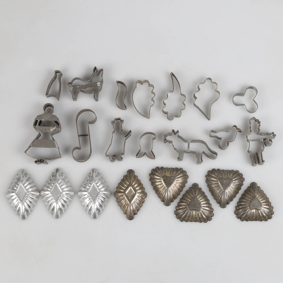 2567335. KAGEFORME, 22 ældre stykker i metal.