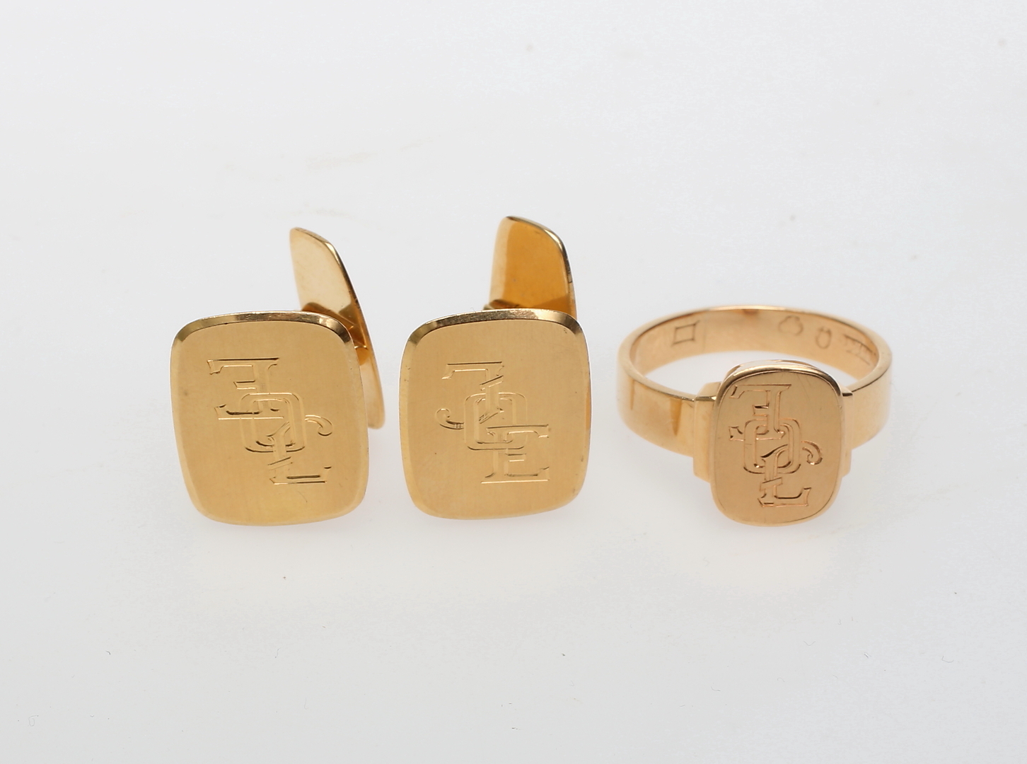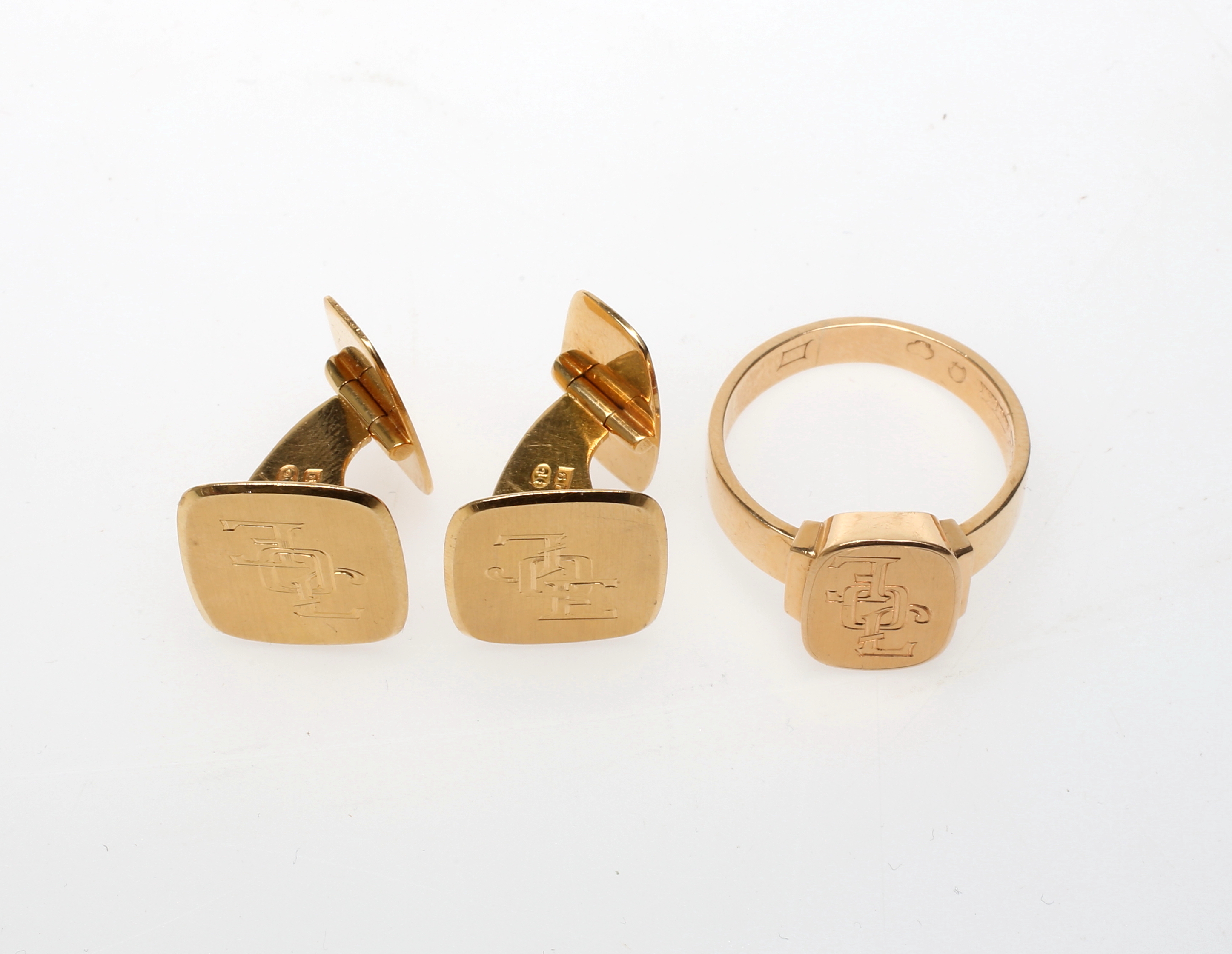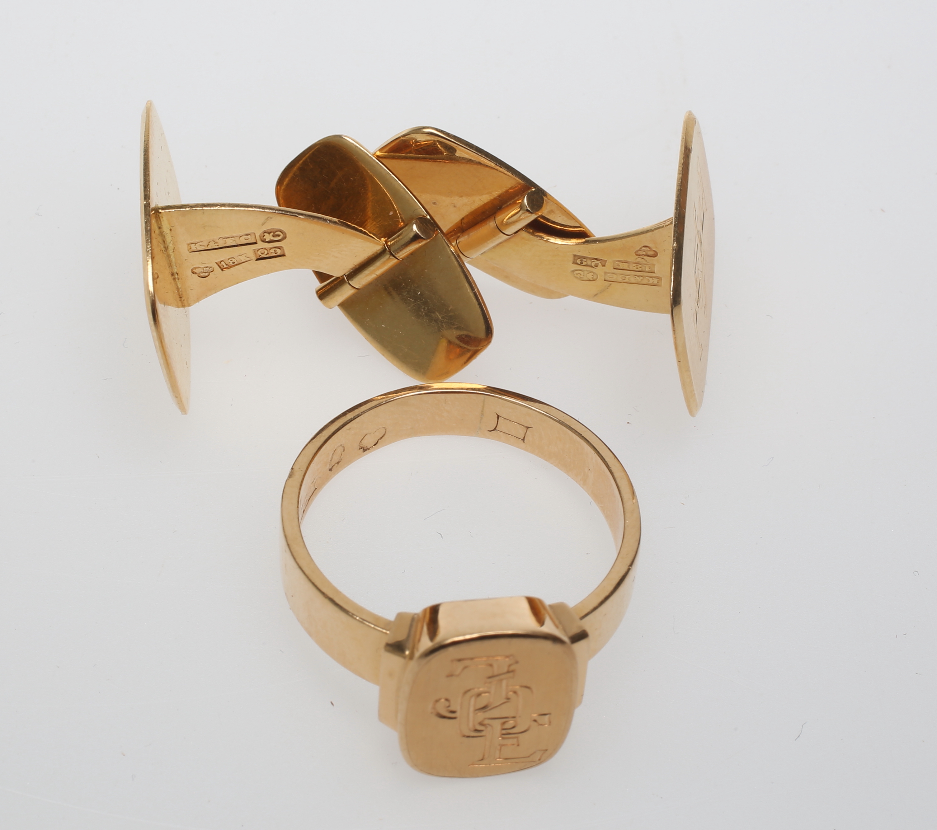 256911. Signetring og MANSETKNAPPE, 18 karat.