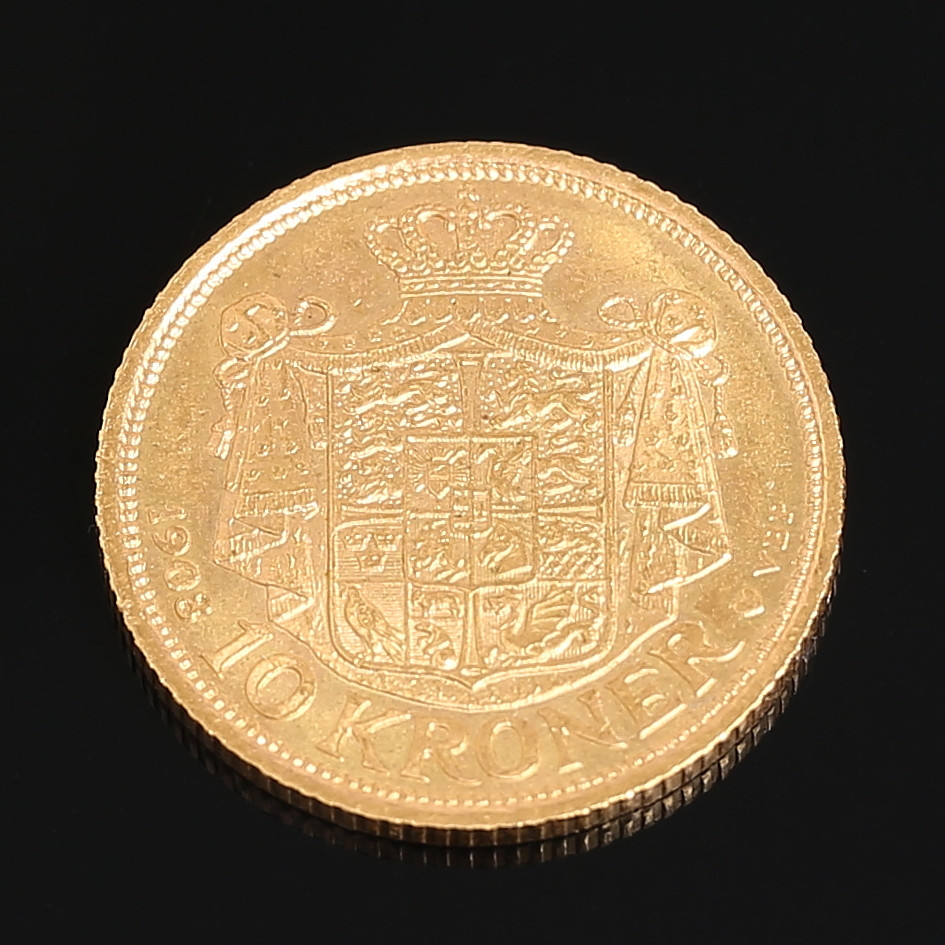 2571427. GULD MØNT, 10 kroner, Frederik VIII, Danmark, 1908.