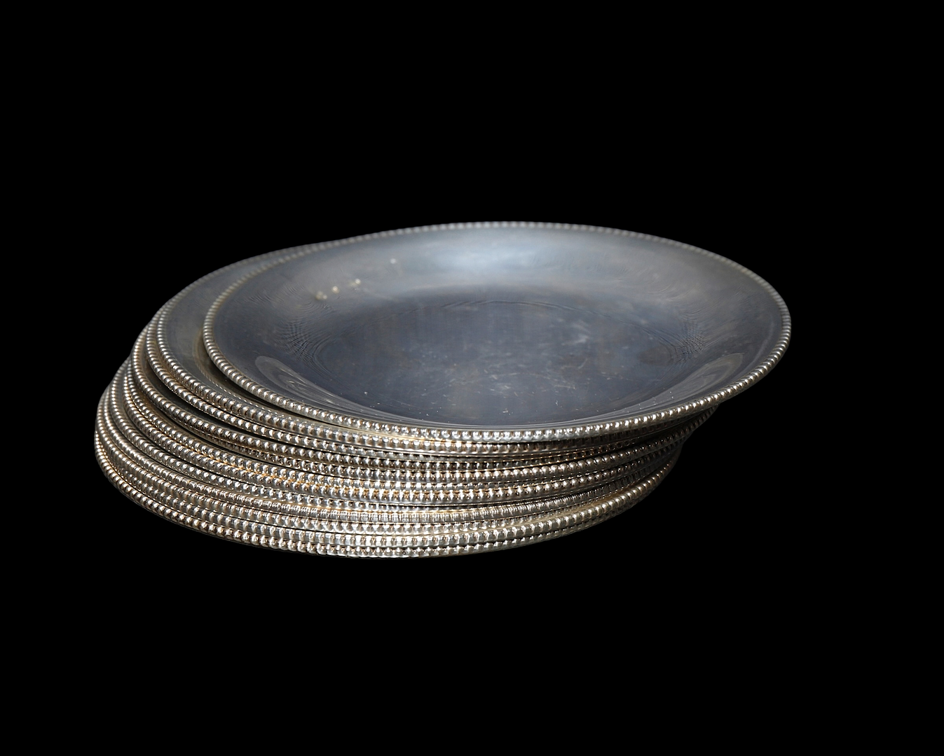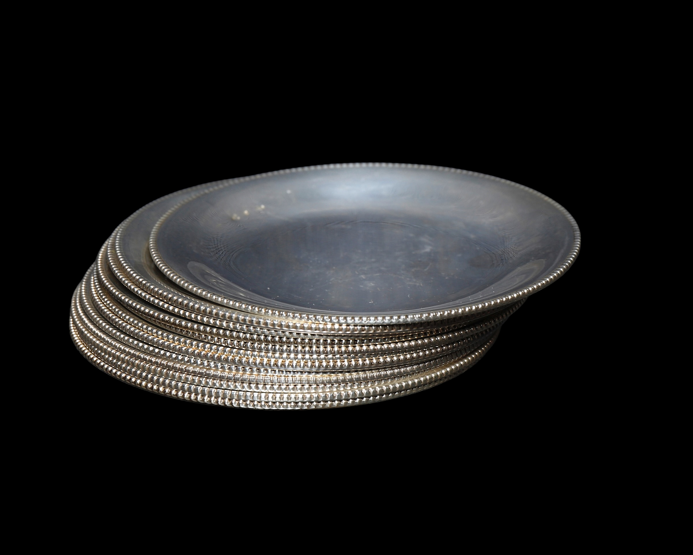2572036. Sæt med tolv brødtallerkener i sølv.
