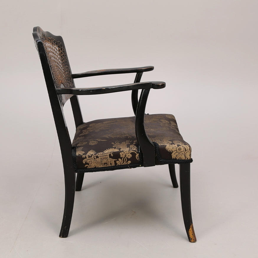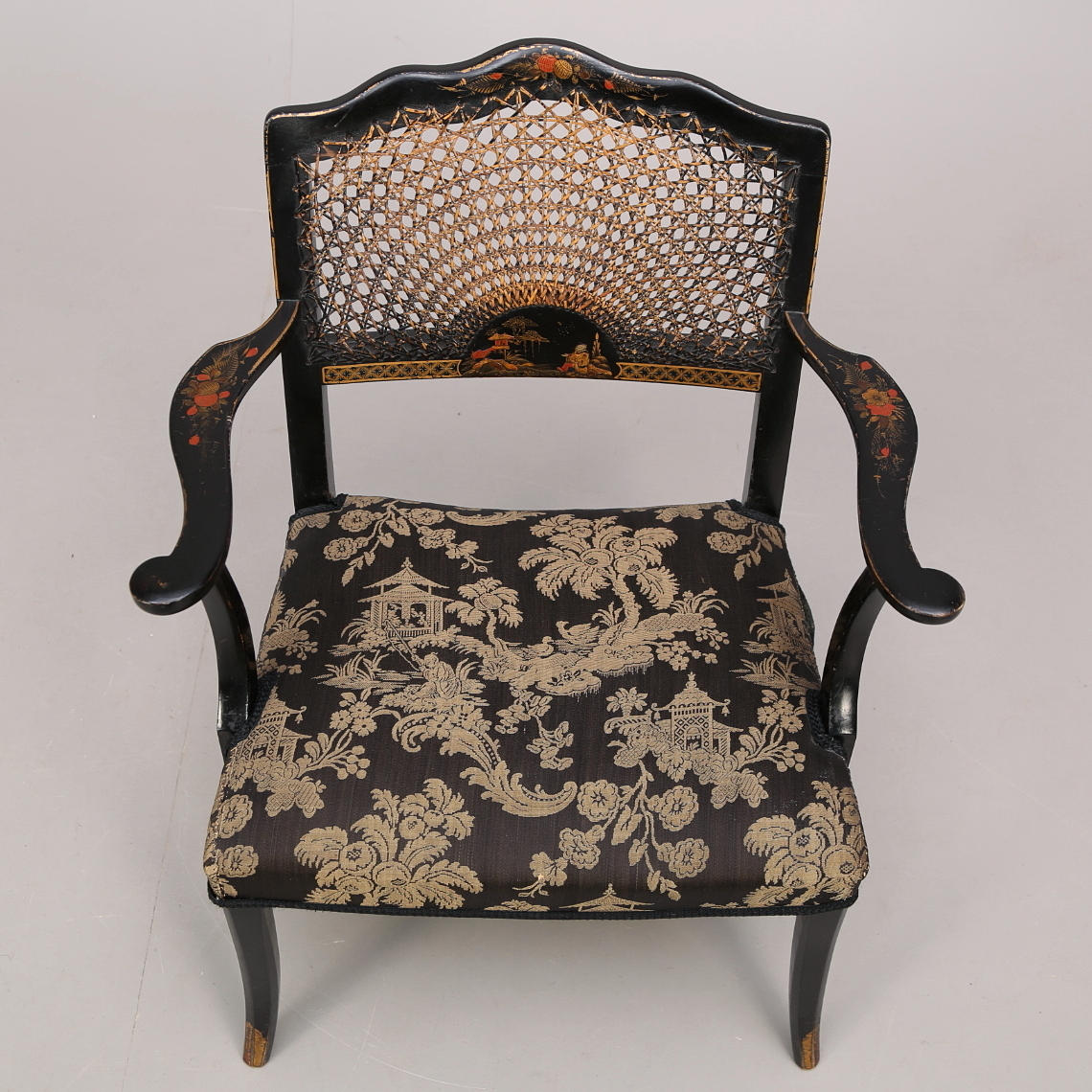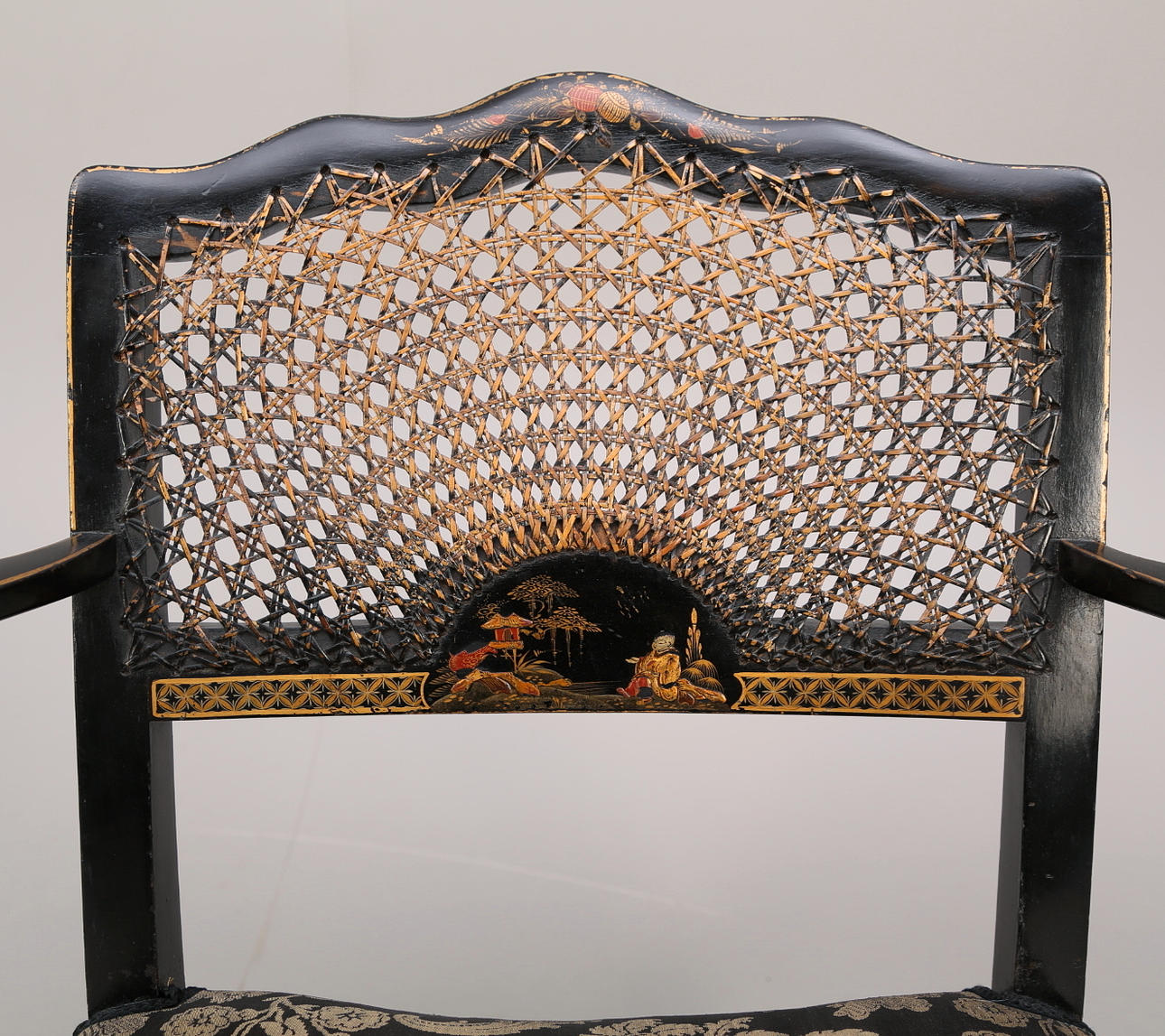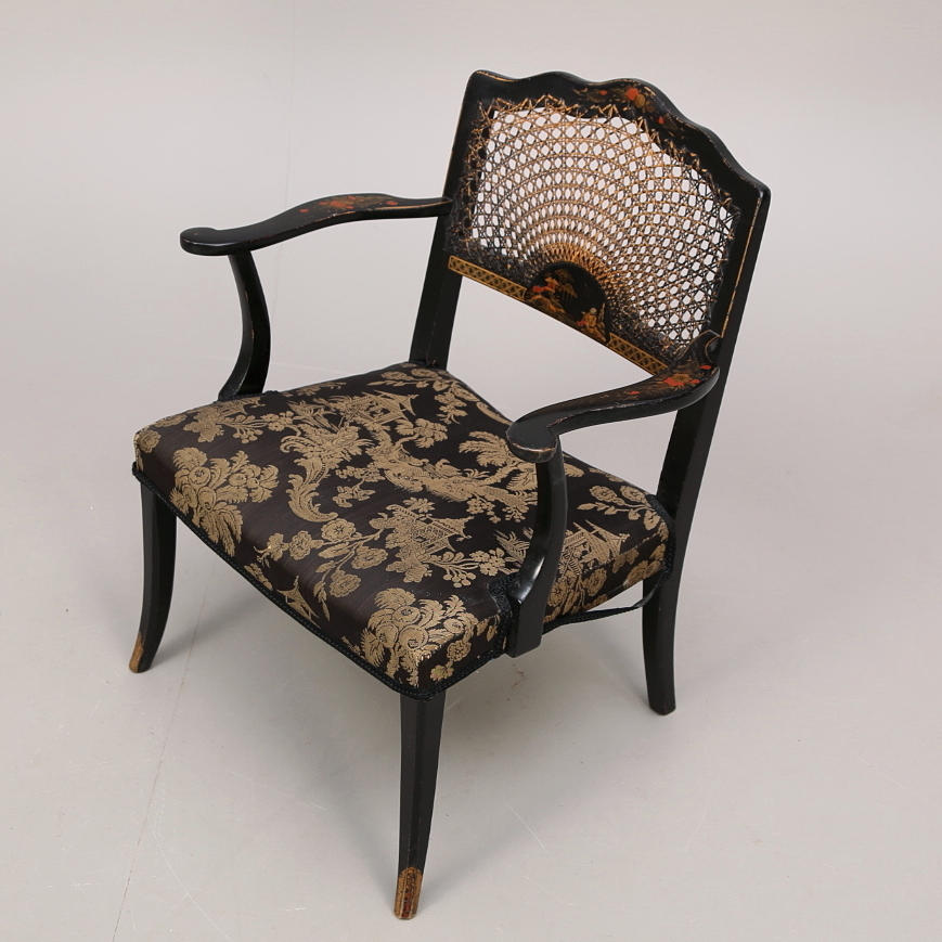 Sortmalet med kinesisk serie, rattanryg, ryghøjde 67, sædehøjde 32 cm.