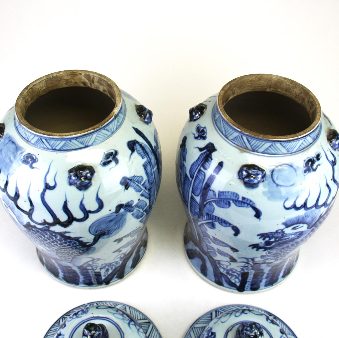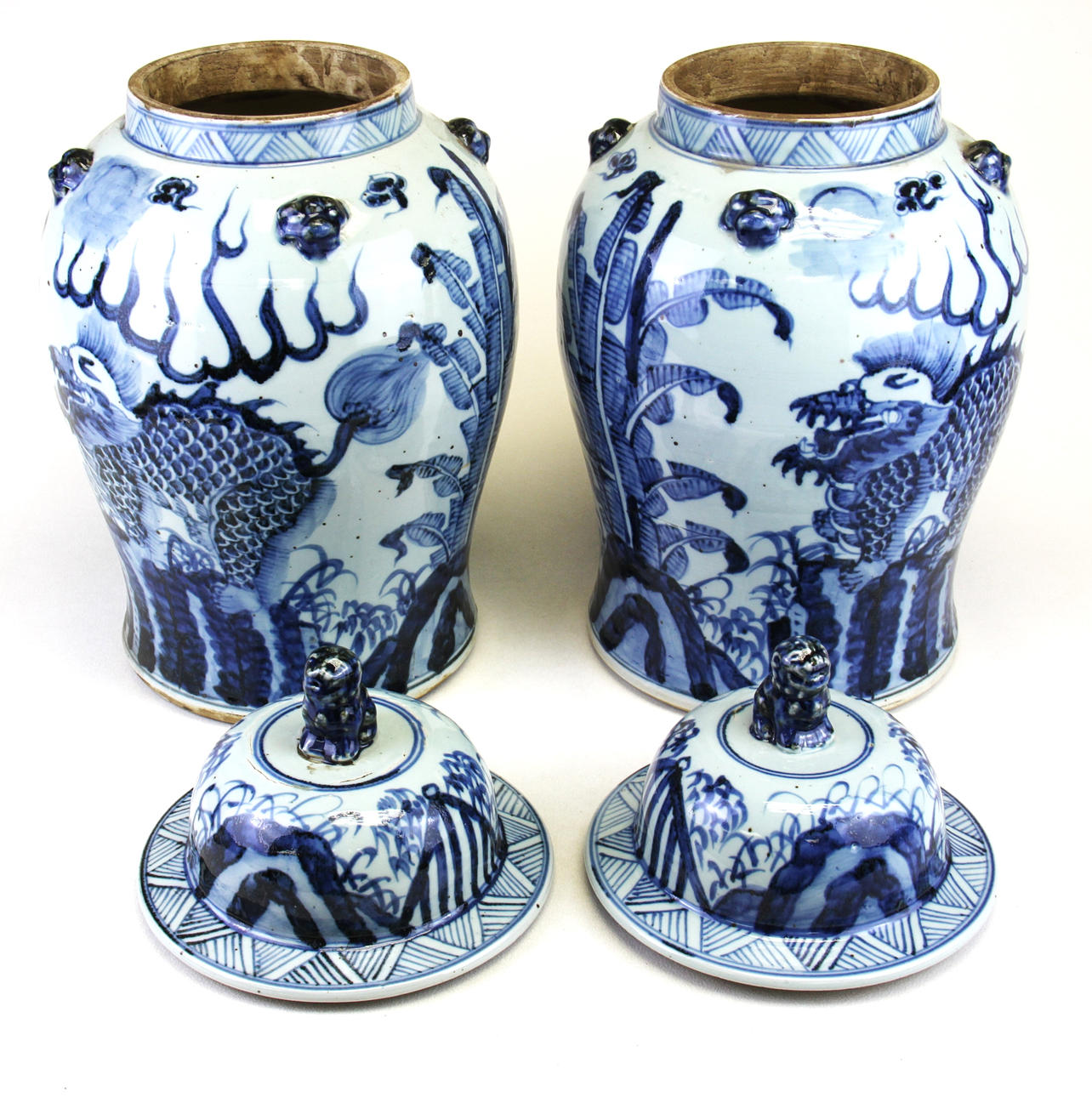 Et par håndmalede kinesiske porcelænskrukker og låg, H. 47cm.