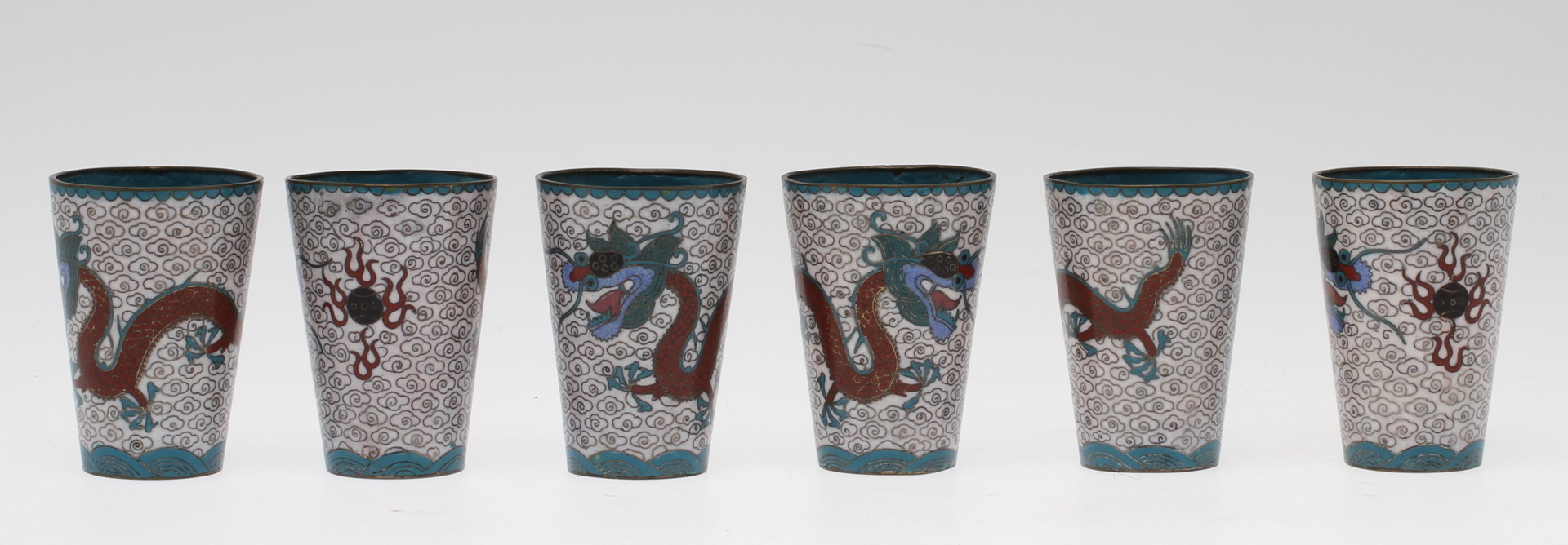 25787. CUP, 6 stk, cloisonné, Kina, 1900-tallet.
