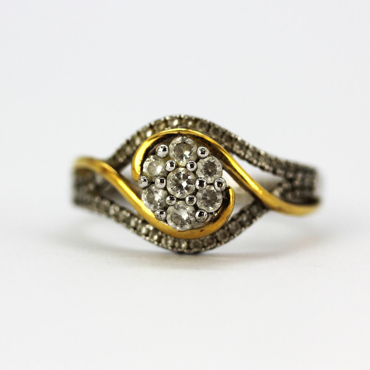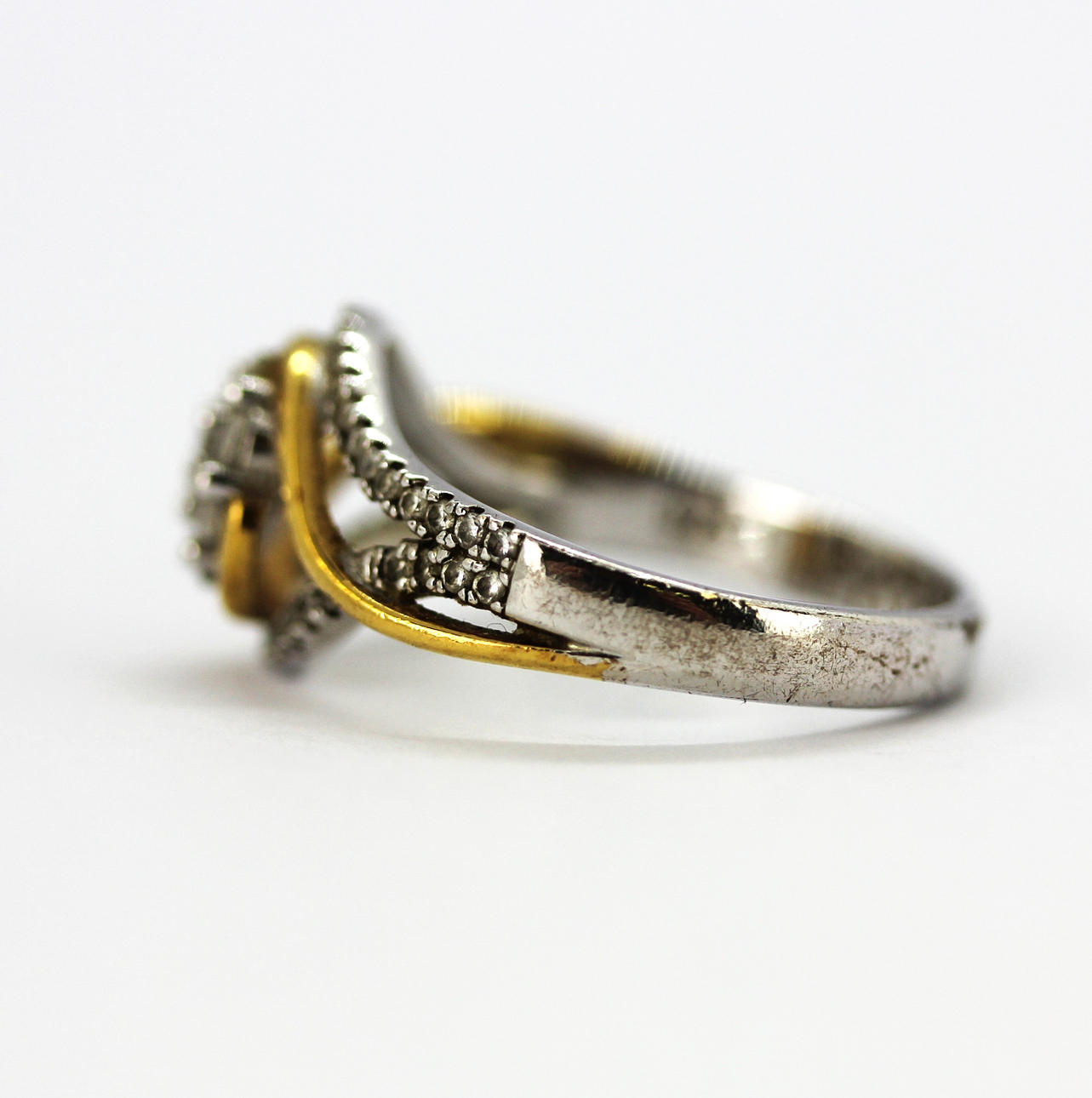 En sølv- og forgyldt ring med brillantslebne cubic zirconia med indgraveret venskab, ring str. N.