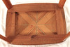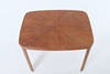 Mindre sidebord, arkitekttegning, skrå elliptiske ben. Almfiner og intarsia i plade. Rødt stempel, R, Mjölby under skiven.