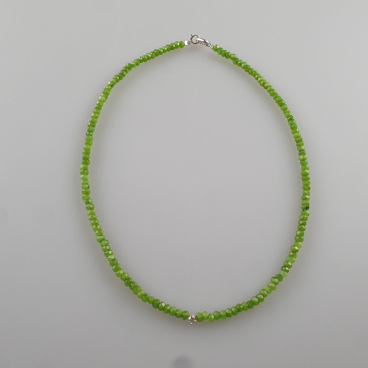 2585591. - Peridot halskæde, med diamant, ca. 0,14 ct.