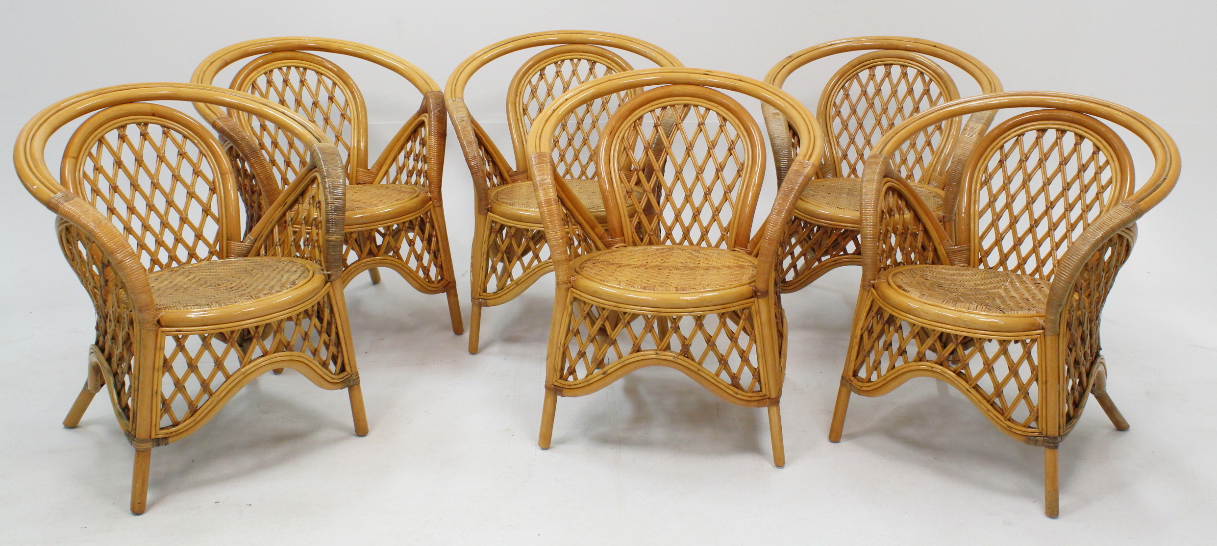 258959. HAVEMØBLER, rattan, 6 stole, 2 borde.
