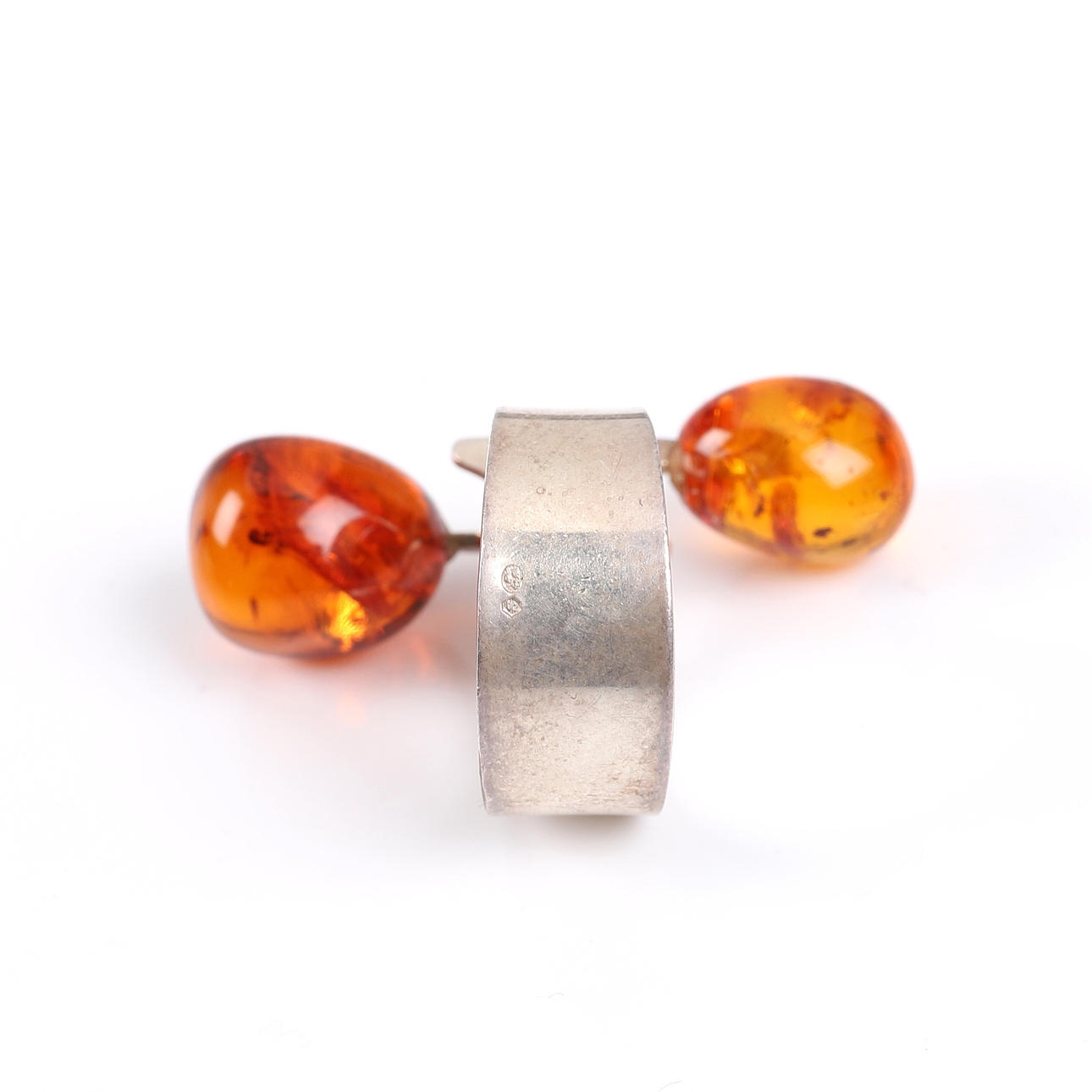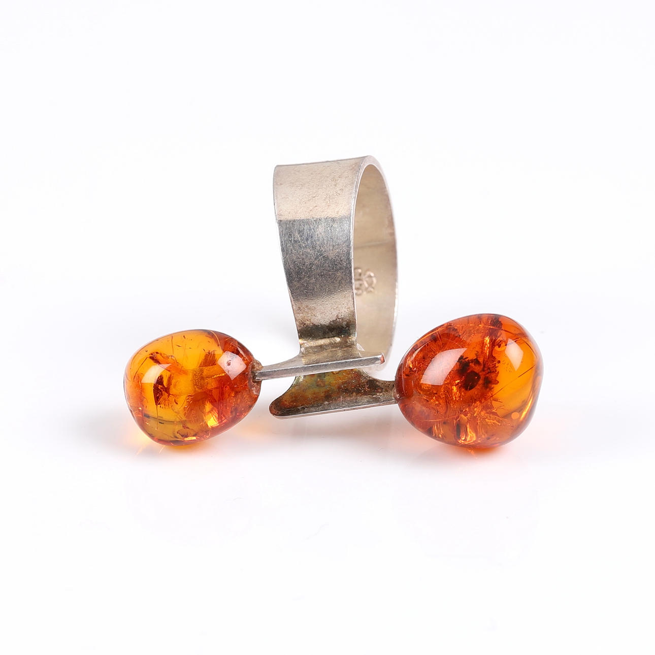 2598327. G19. RING i sølv med ravsten, vægt 5,2 gram.