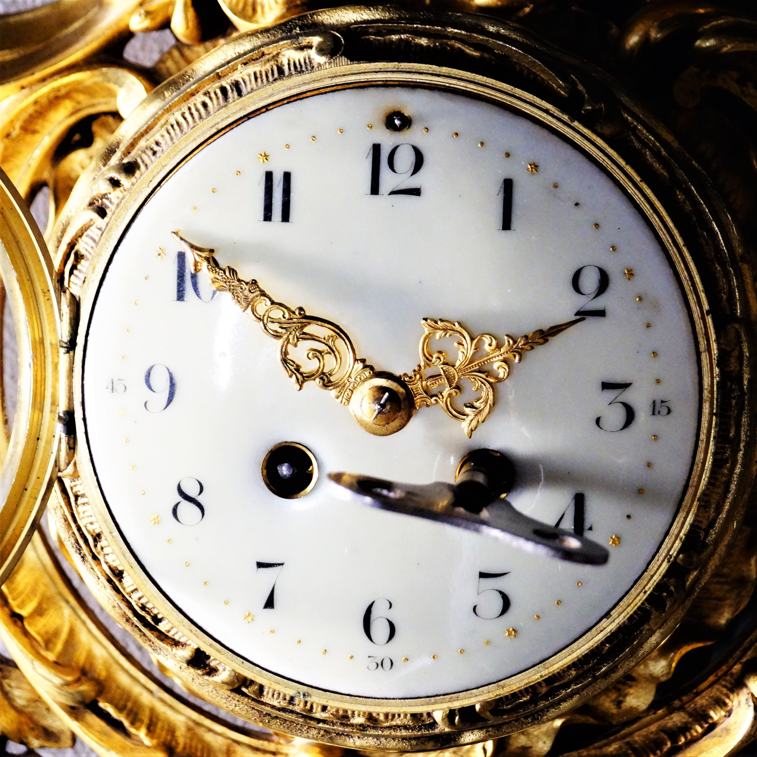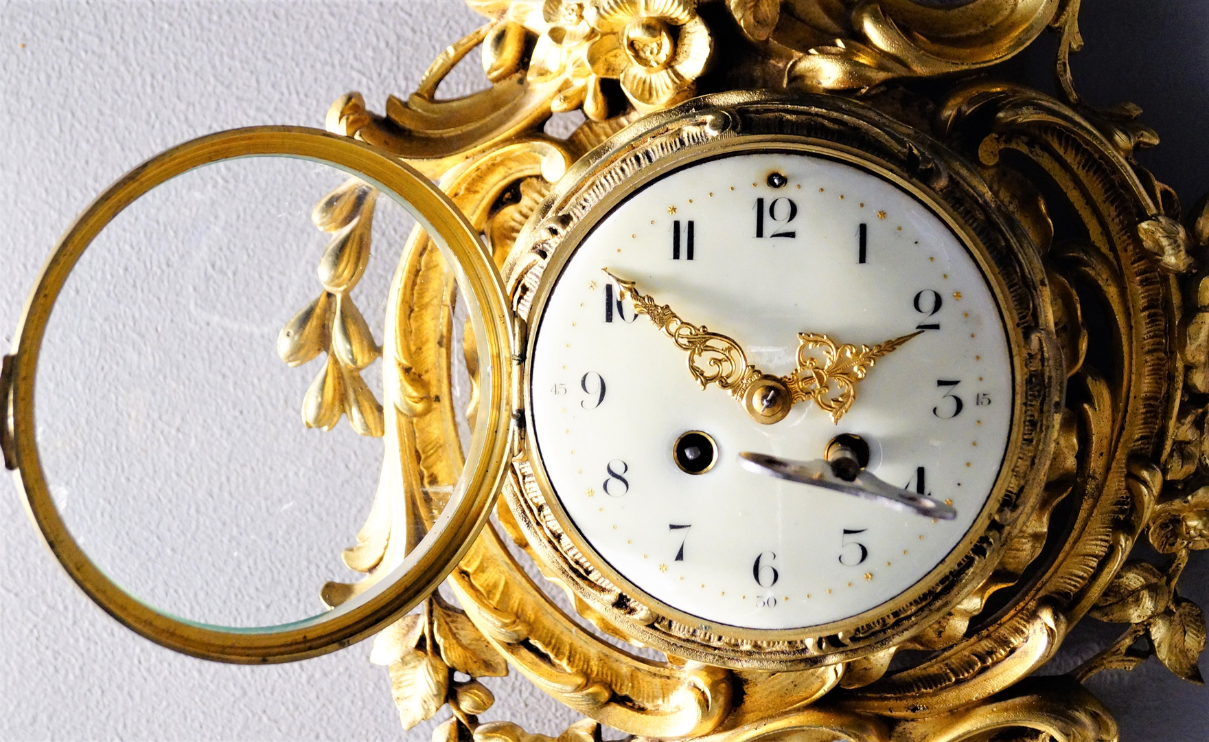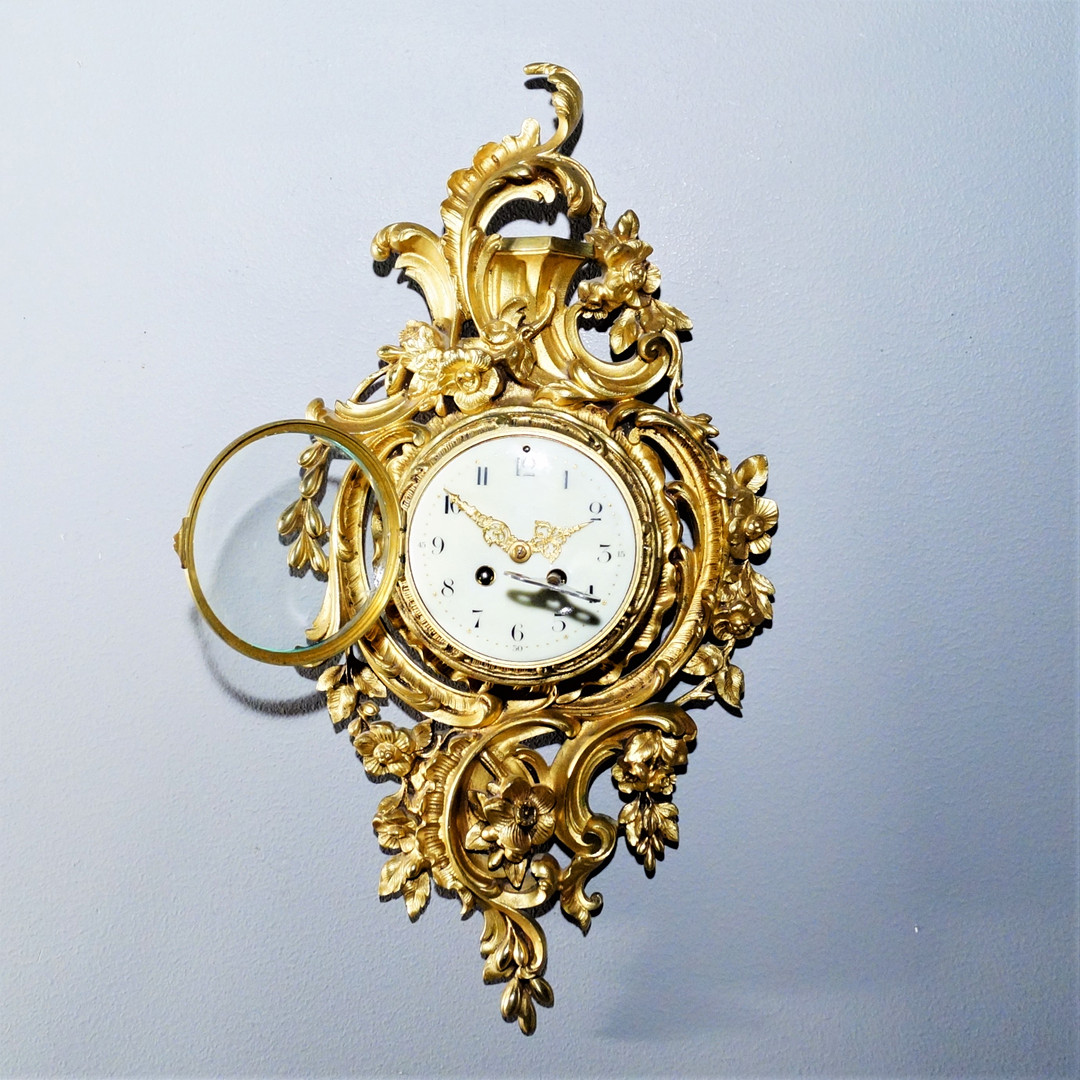 2600760. FRANSK VÆGPENDUL I FORGYLDT BRONZE.