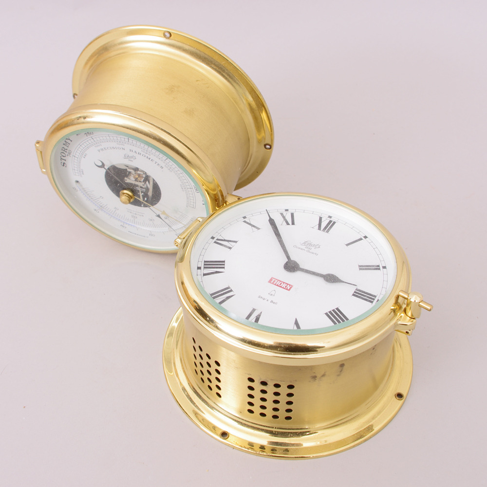 260164. SKIBSUR OG SKIBSBAROMETER, skat, messing.