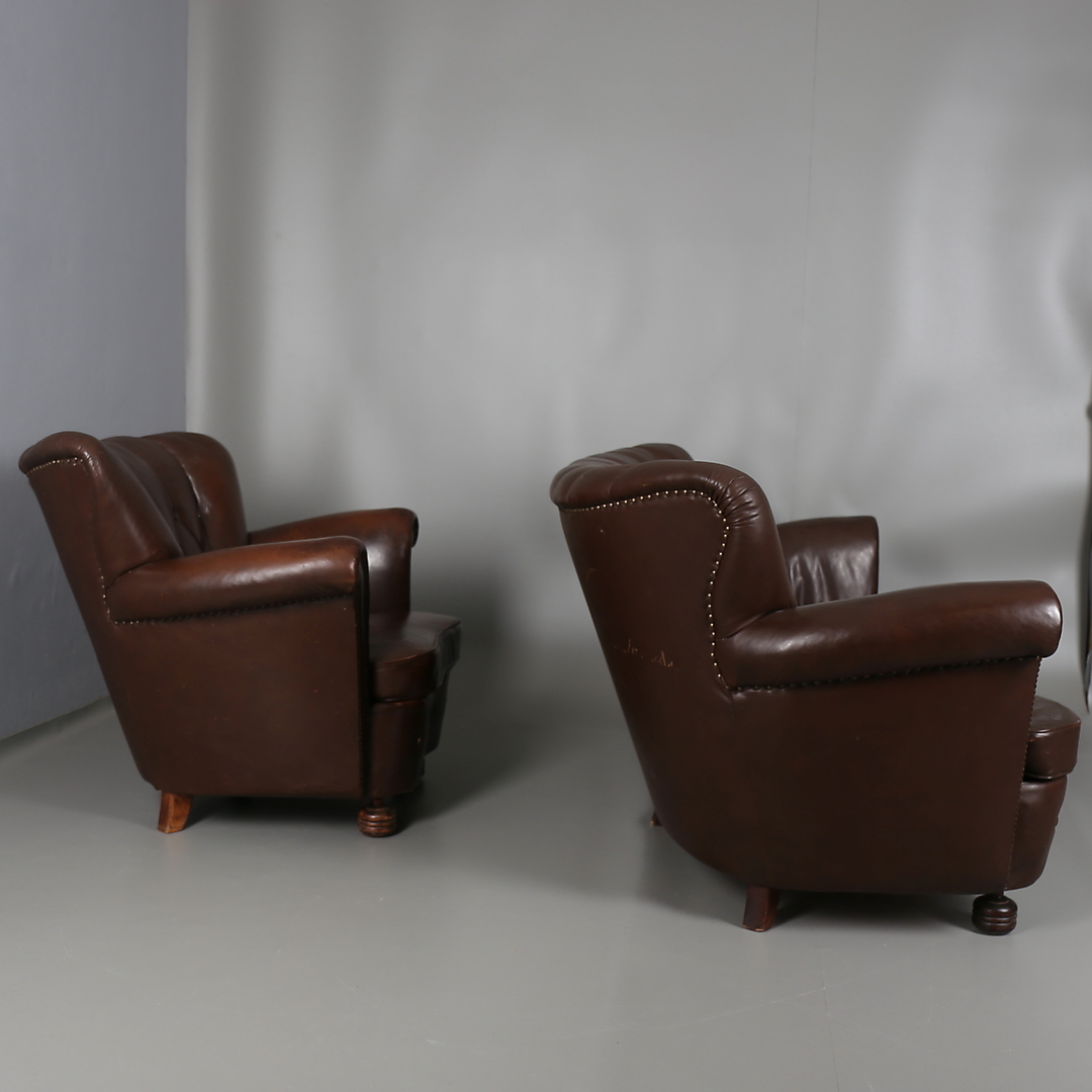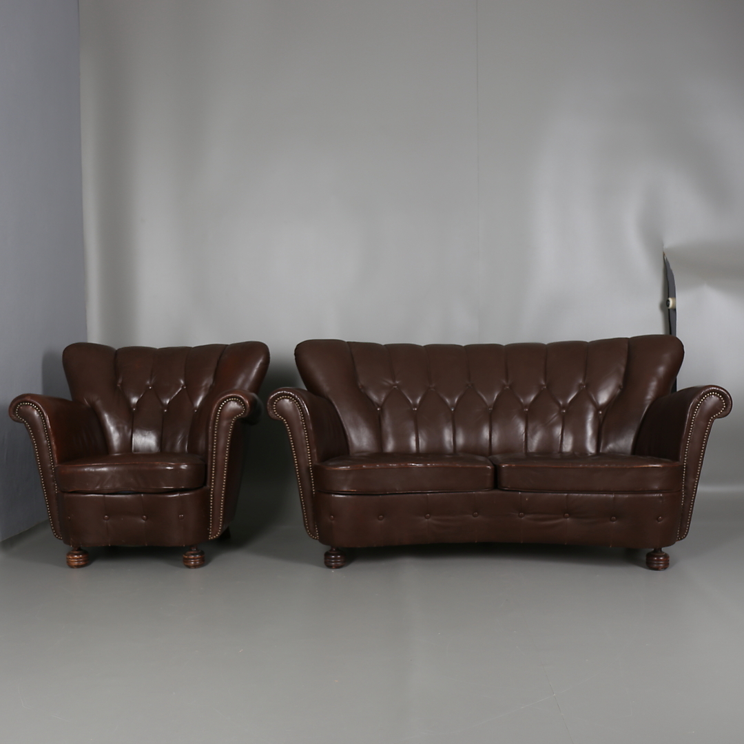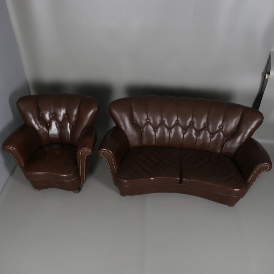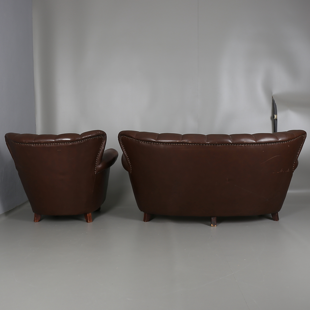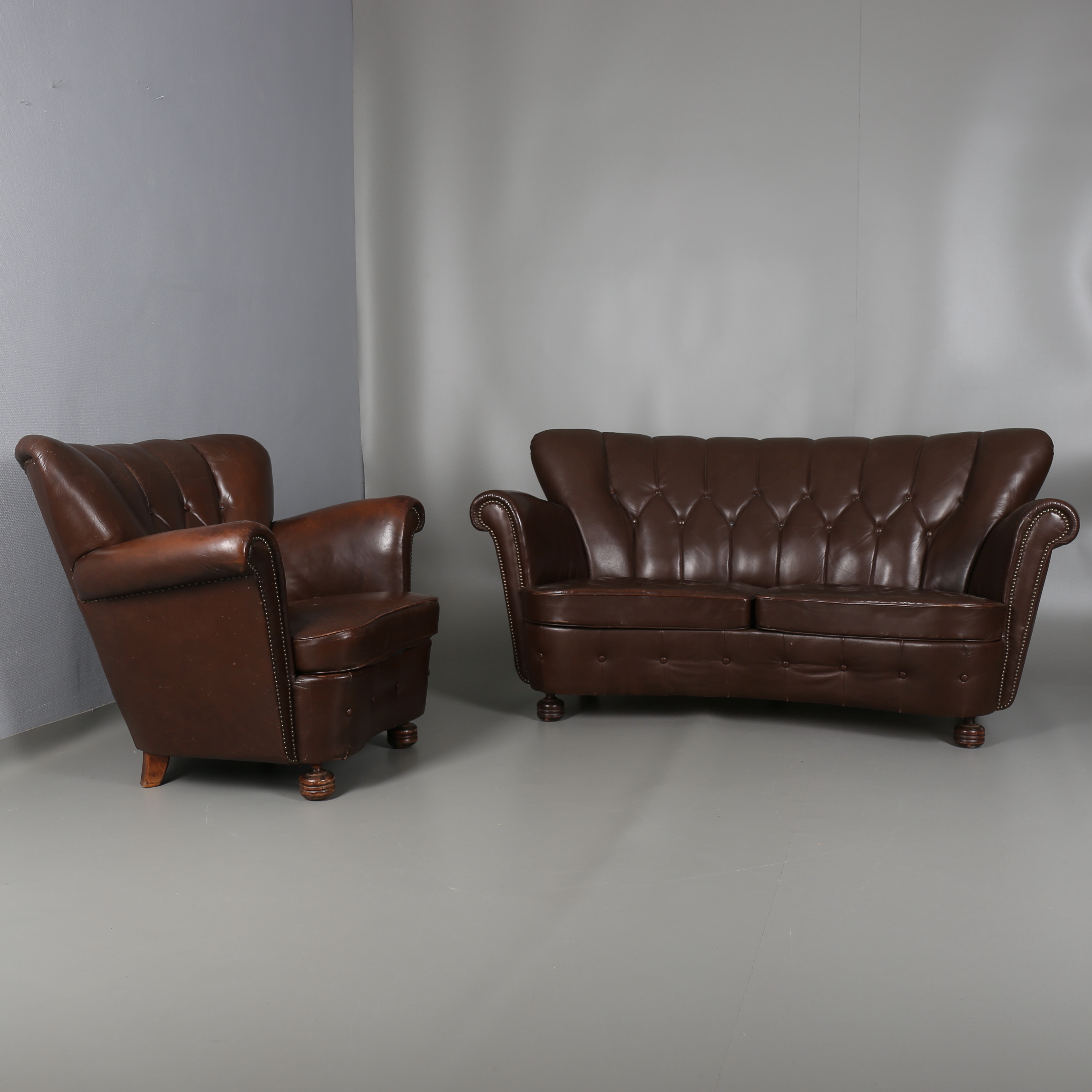 260191. SOFA OG LÆNESTOL i læder, 1930'erne.