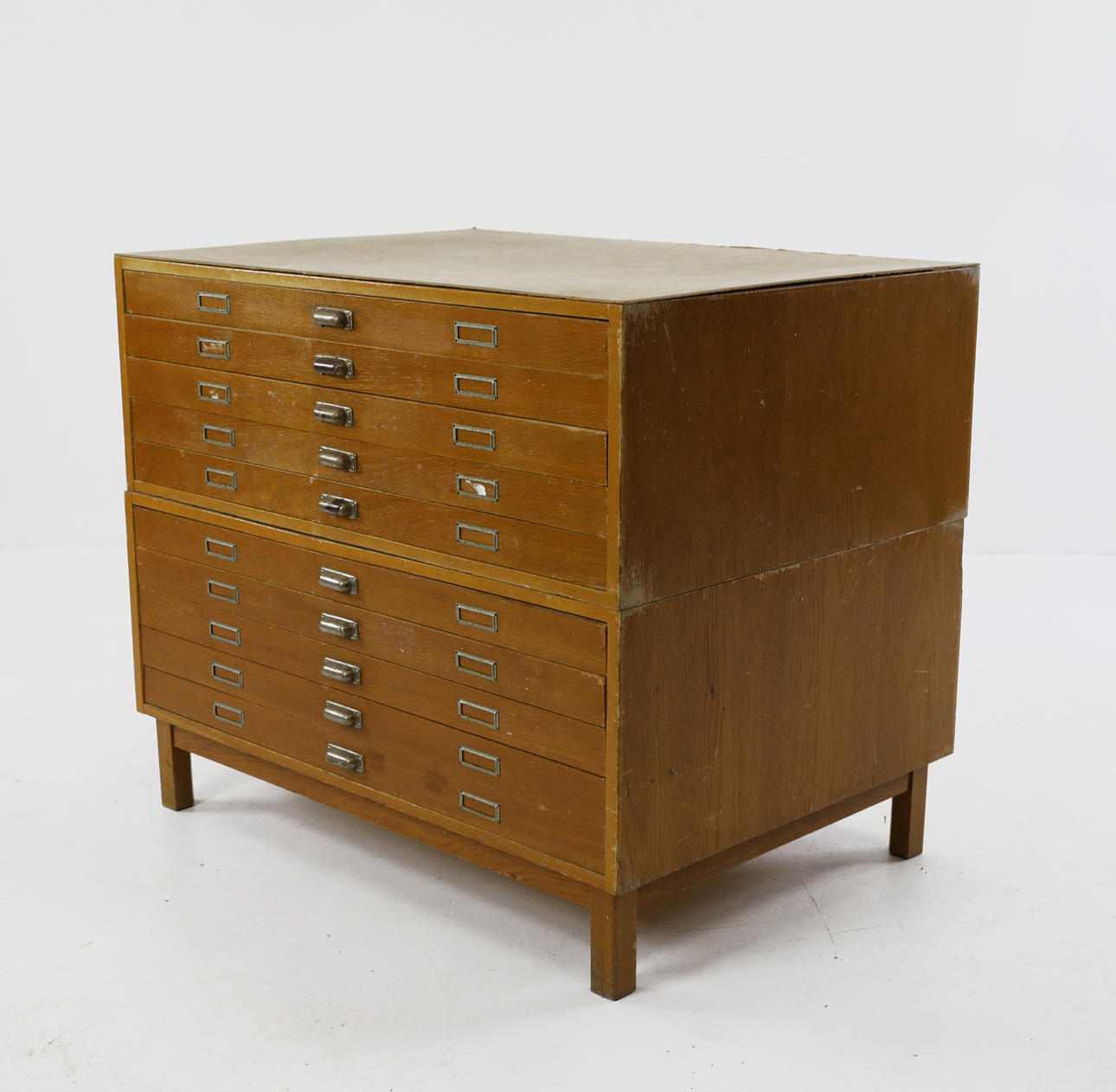 To moduler, 5 æsker hver, på ben. Højde 84 cm Bredde 99 cm Dybde 70 cm.