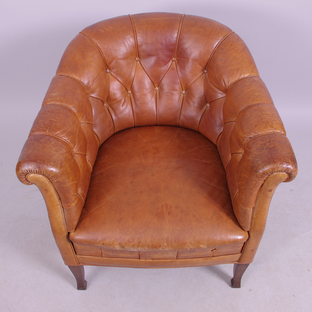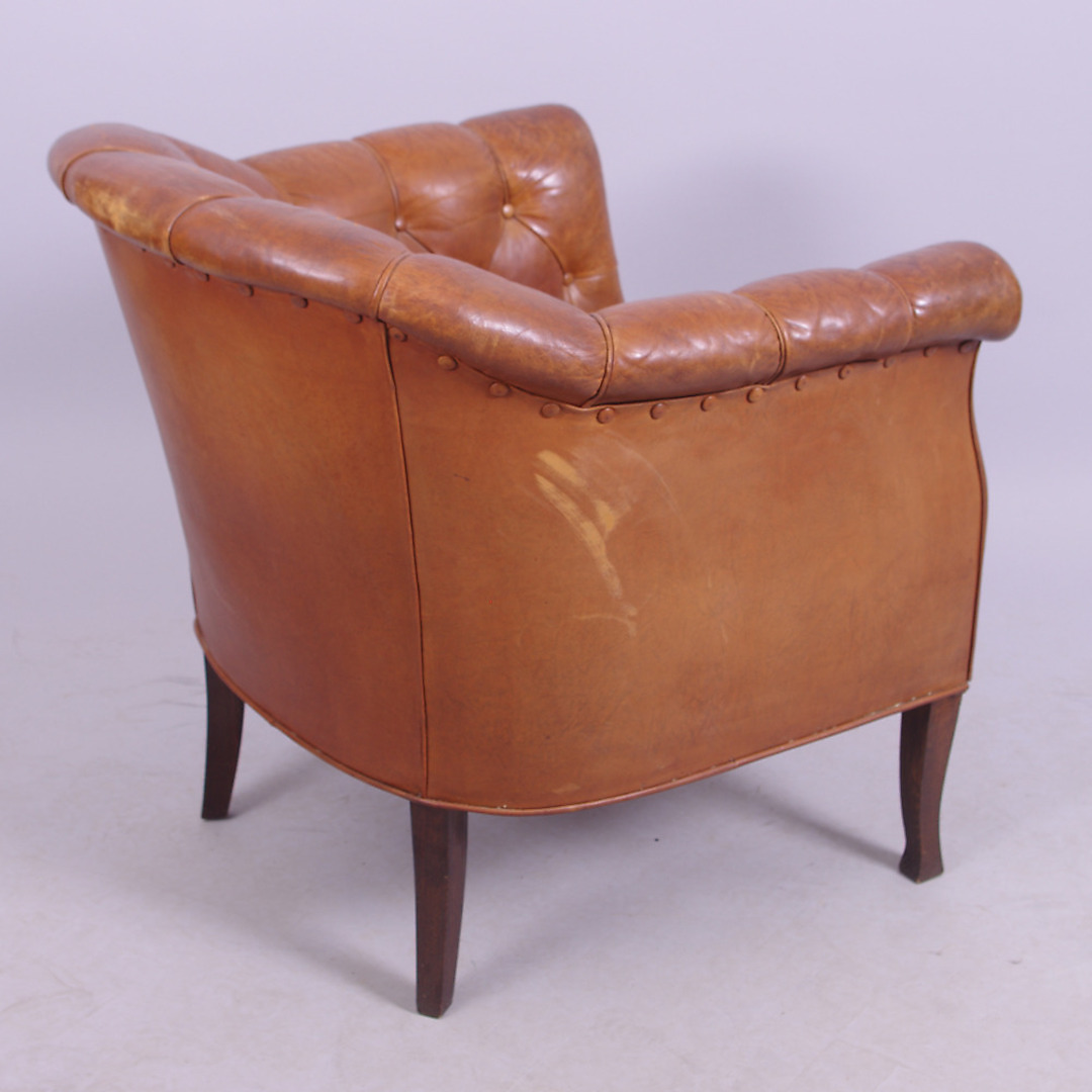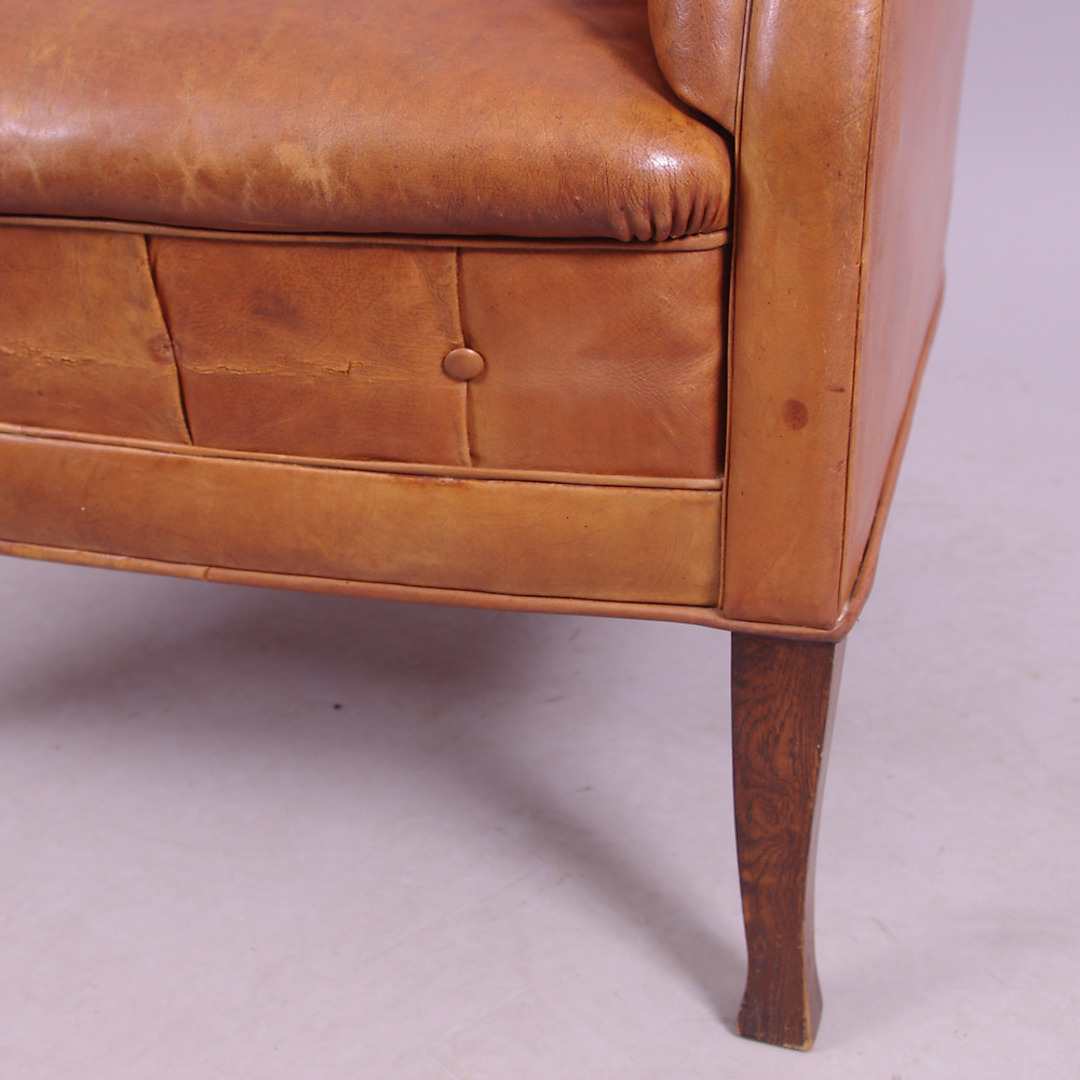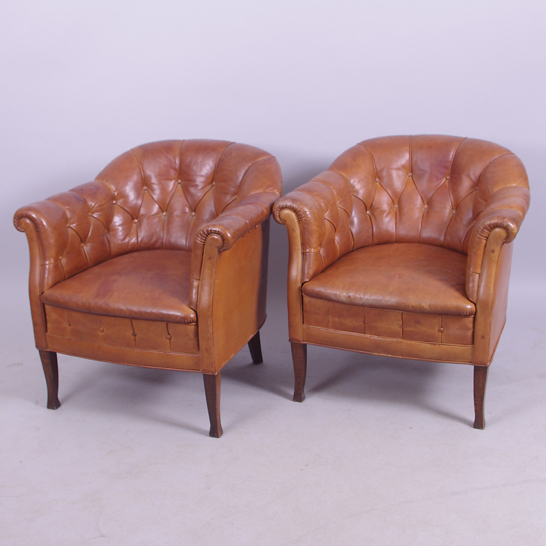 260894. LÆNESTOLE, 1 par, brunt læder.