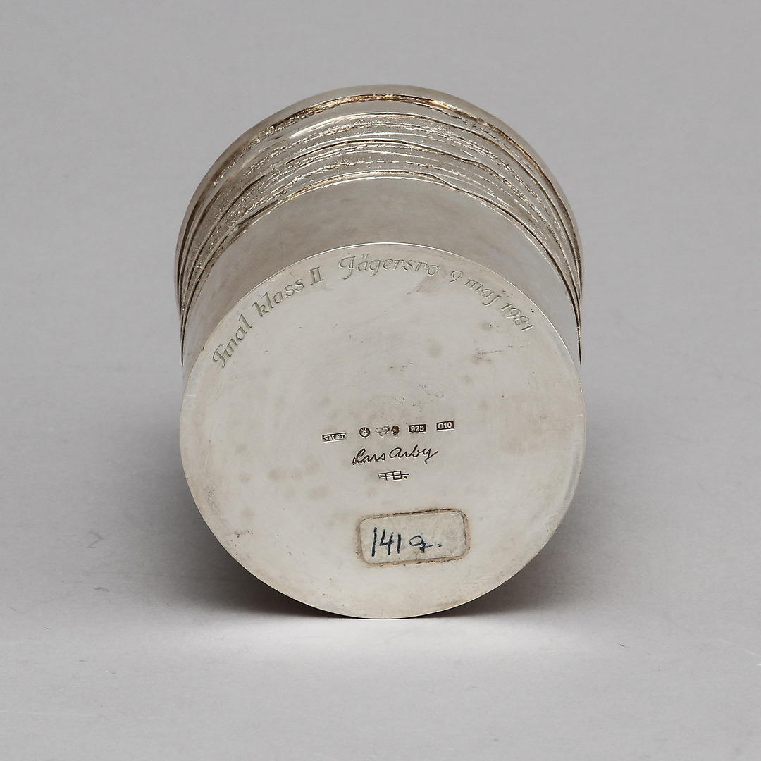 261038. MUGG, sterlingsølv, Lars Arby, Gøteborg, 1981. Omkring 138 gram.