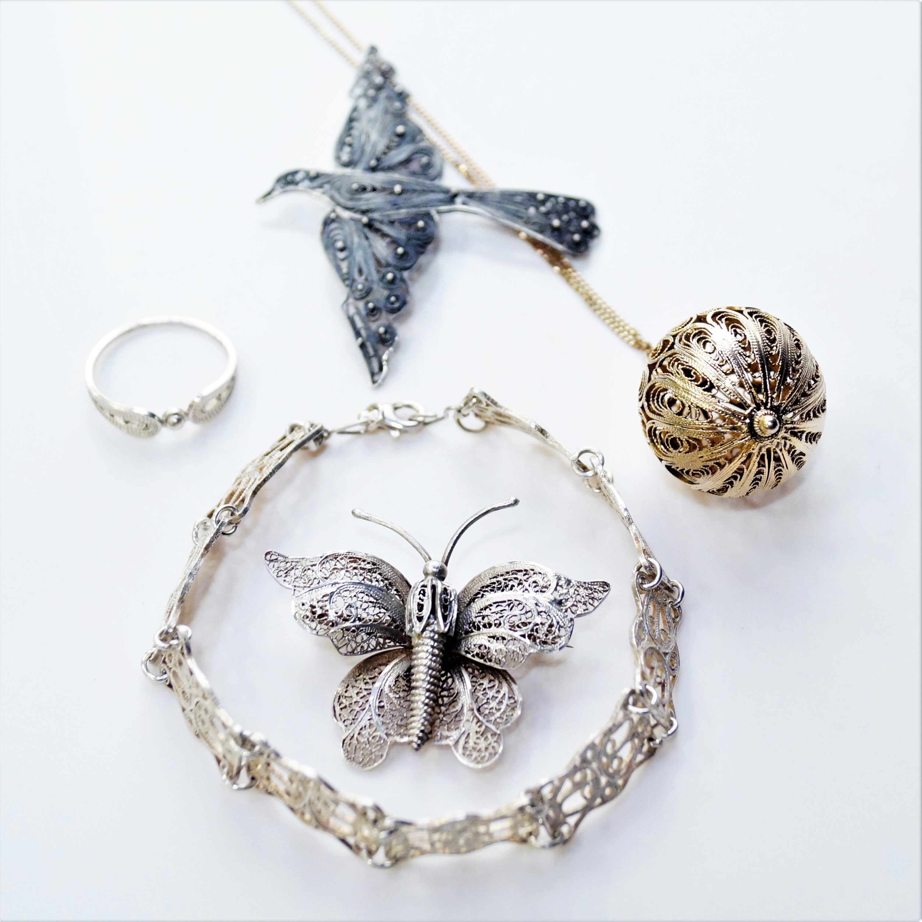 2612226. SMYKKER, 5 stk, sølv, filigran.