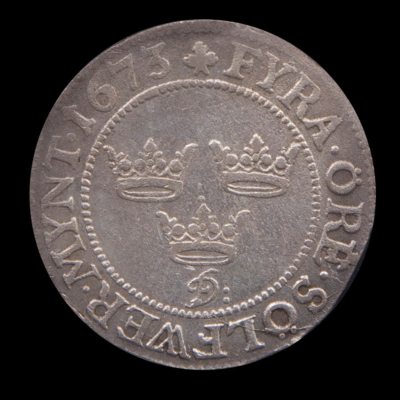 2617035. MØNT, Carl XI, 4 øre, sølv, 1673.