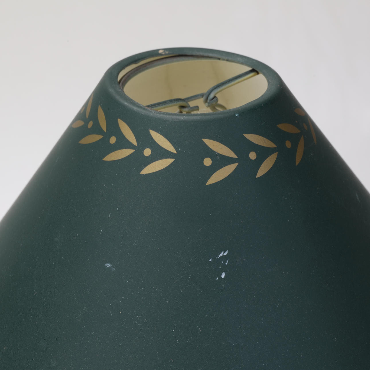 Den grønne bliklampe har målene, højde ca 44 cm, diameter ca 20,5 cm.