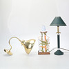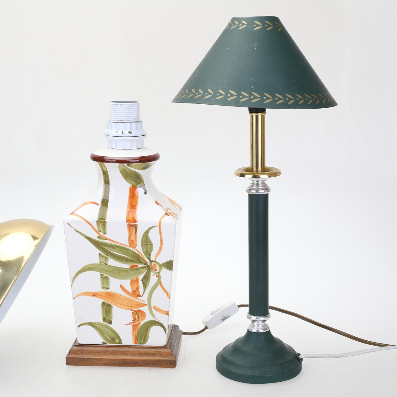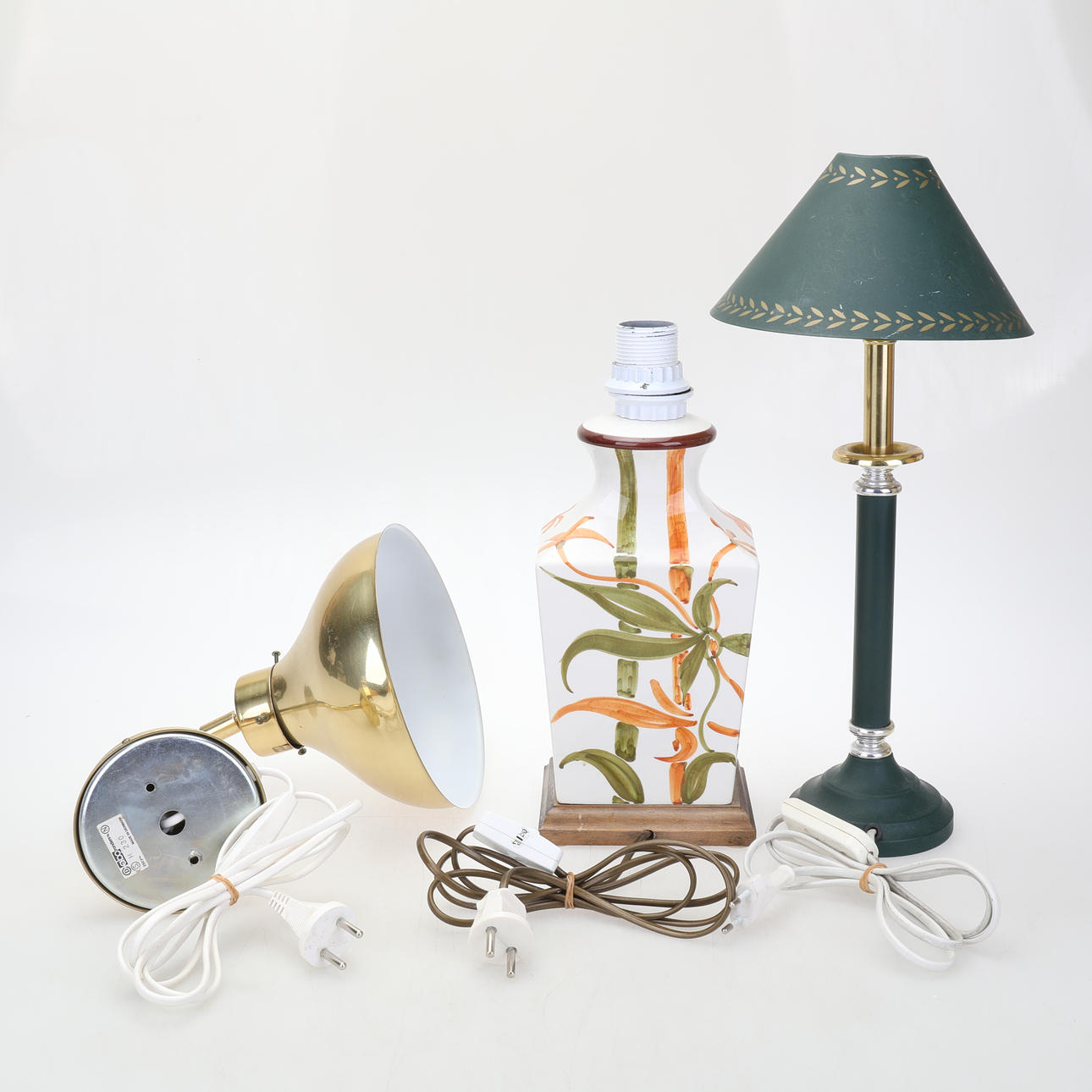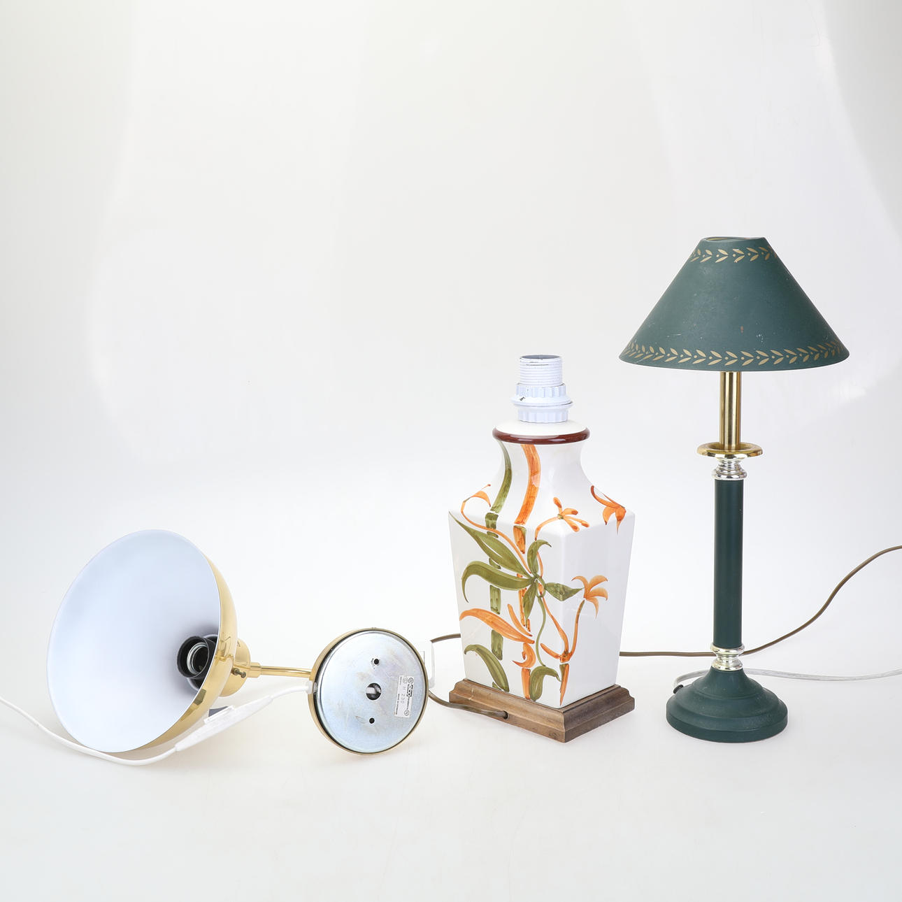 Tre moderne lamper, to bordmodeller og en væglampe.