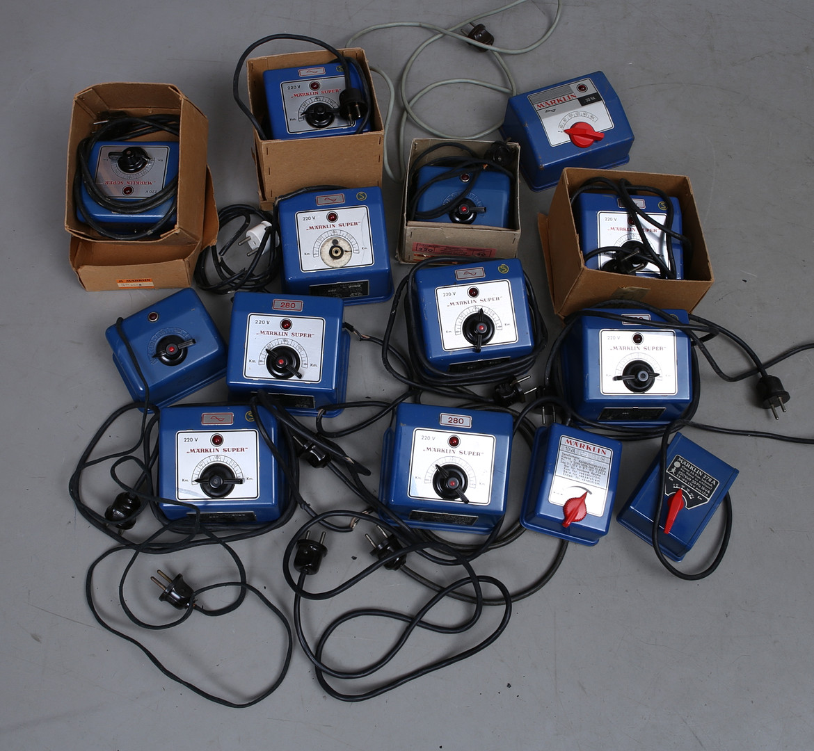 2620009. MÄRKLIN ældre transformatorer, ca 14 stk, delvist i originale æsker.