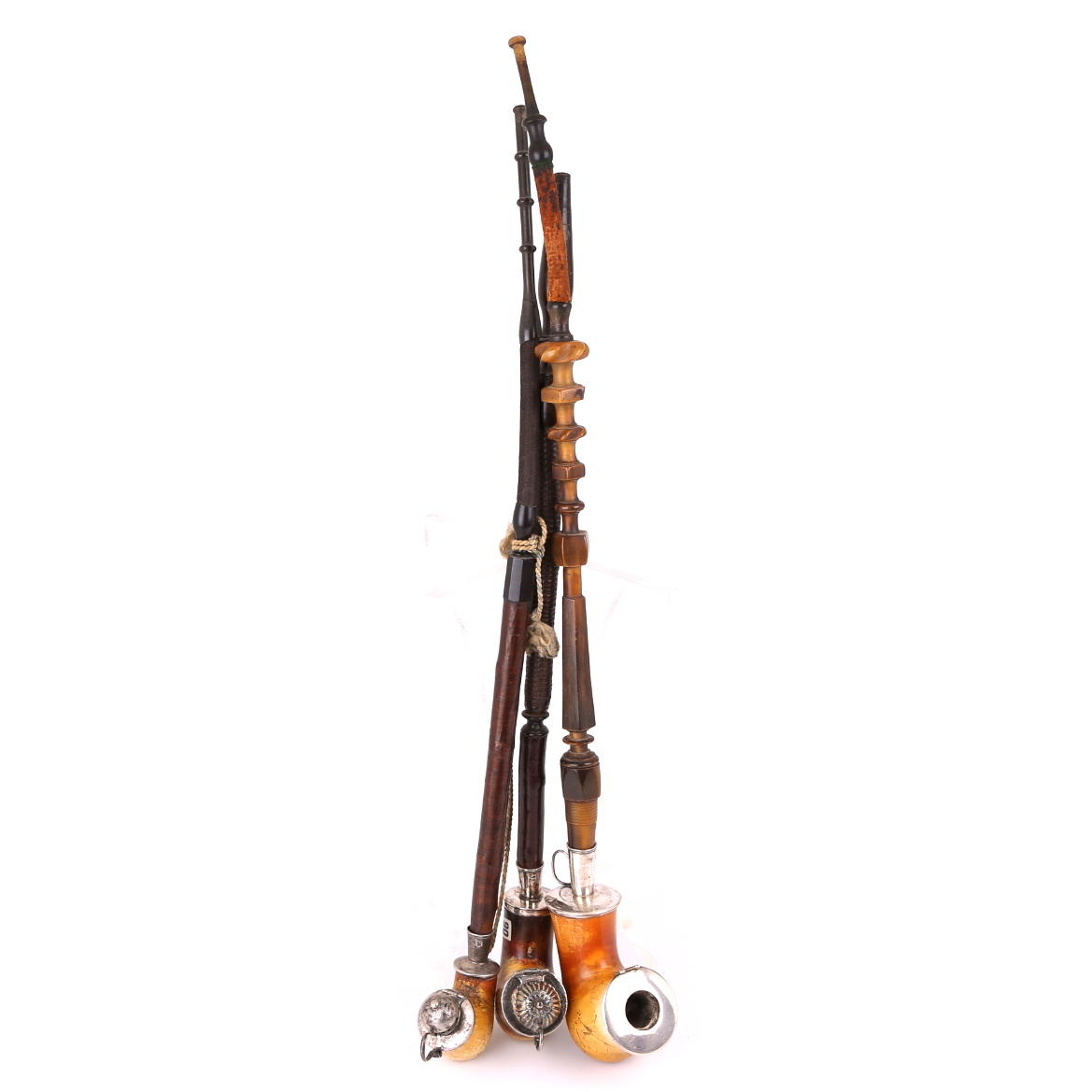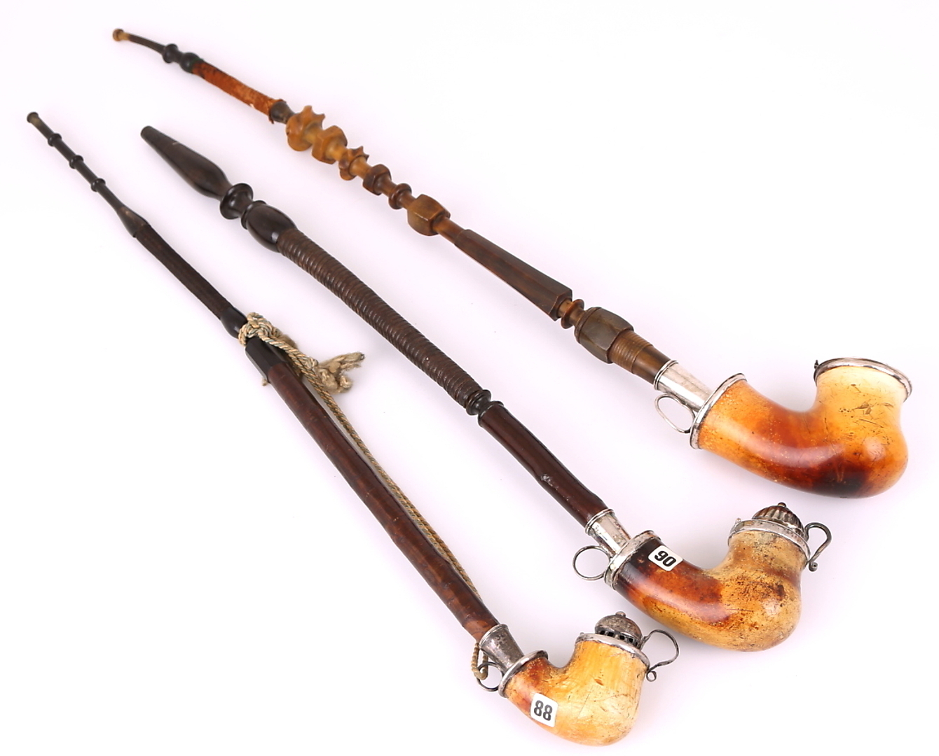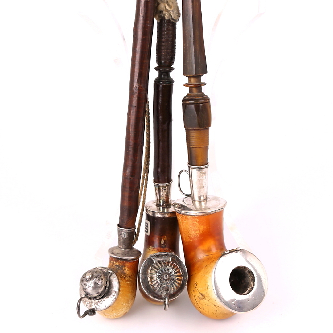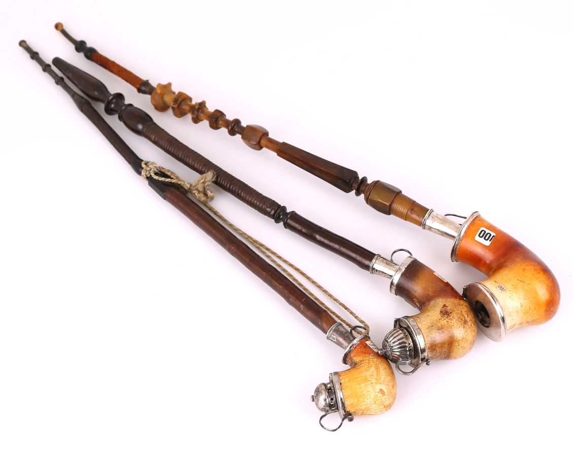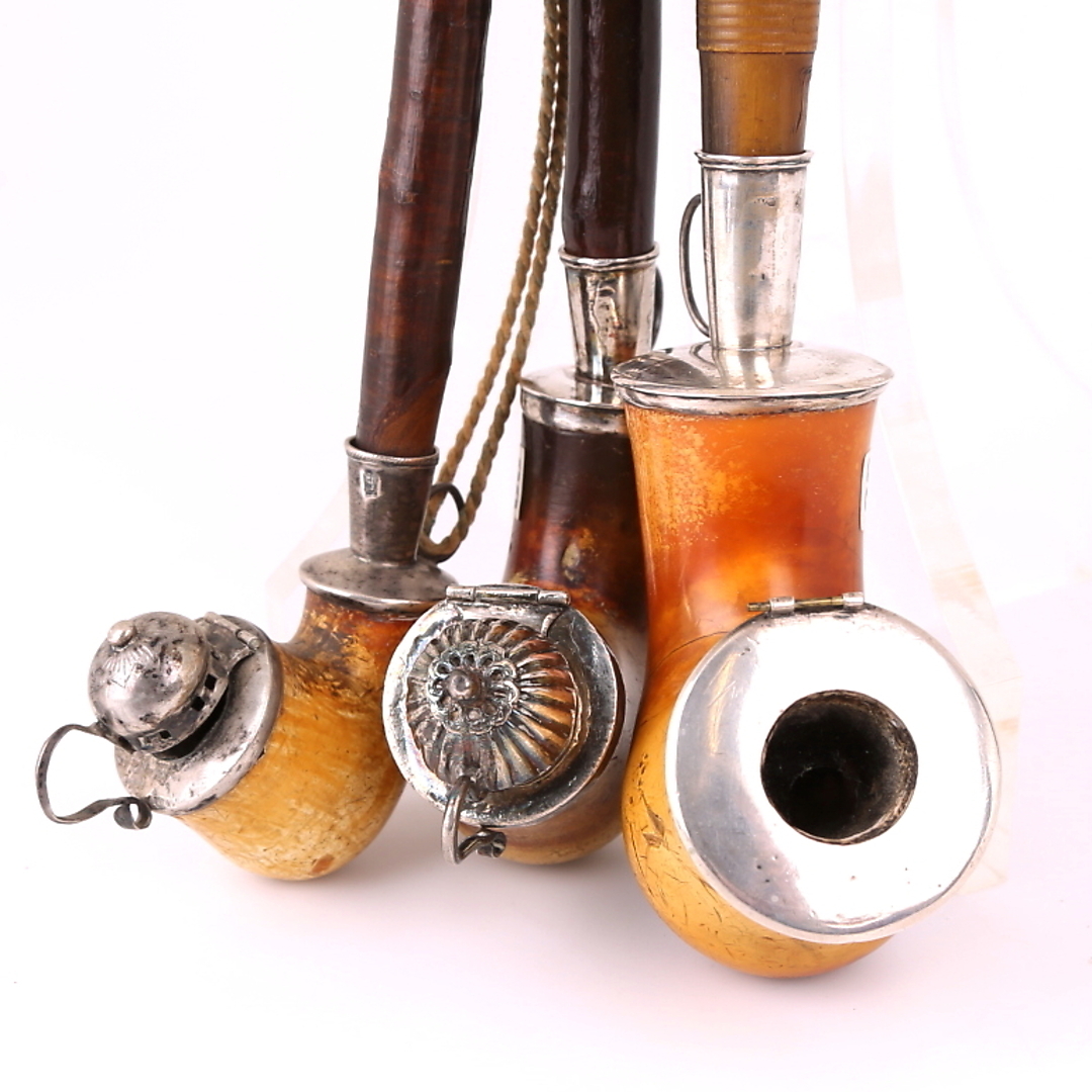 262406. LANGE RØR, 3 stk, 1800-tallet, sølvindrammet.